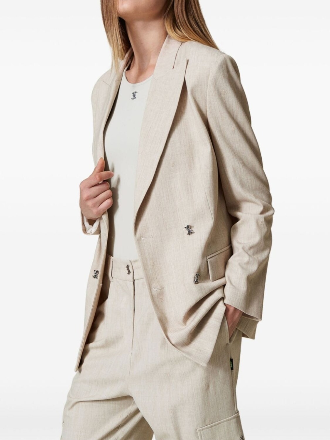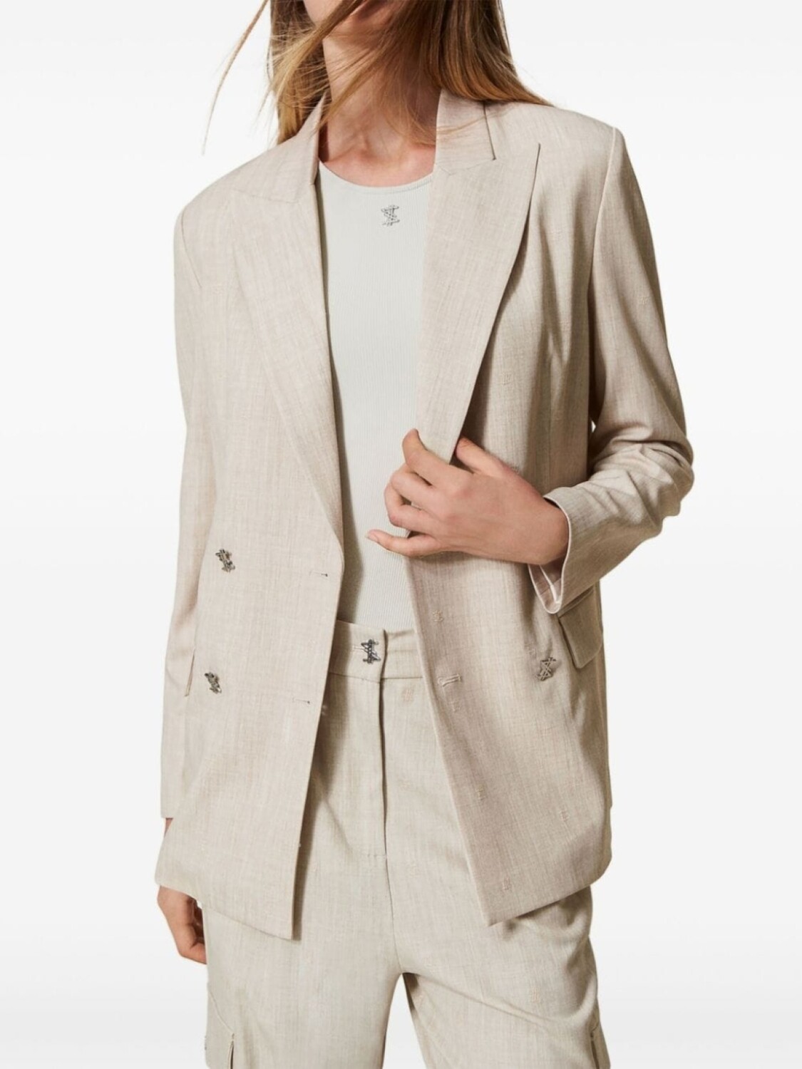 Меланжевый блейзер MYFO TWINSET, нейтральный цвет