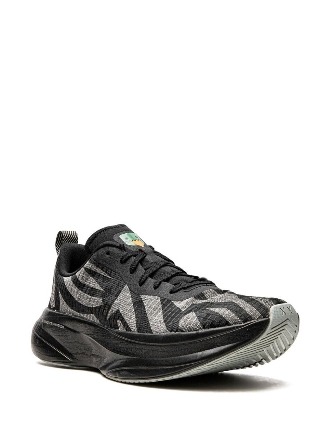 Черный, сплошной графичный принт, закругленный носок, шнуровка спереди, петля для подтягивания сзади, стелька с логотипом и резиновая подошва. Эта модель представлена на маркетплейсе, где можно найти самые редкие модели кроссовок, о которых мечтают коллекционеры и любители streetwear по всему миру.