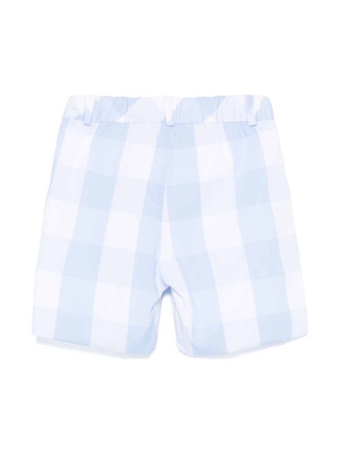 Белый/пастельно-голубой, хлопок, поплин, клетчатый узор, застежка на молнии и пуговице спереди, петли для ремня, два кармана по бокам, эластичный пояс сзади, прямой крой