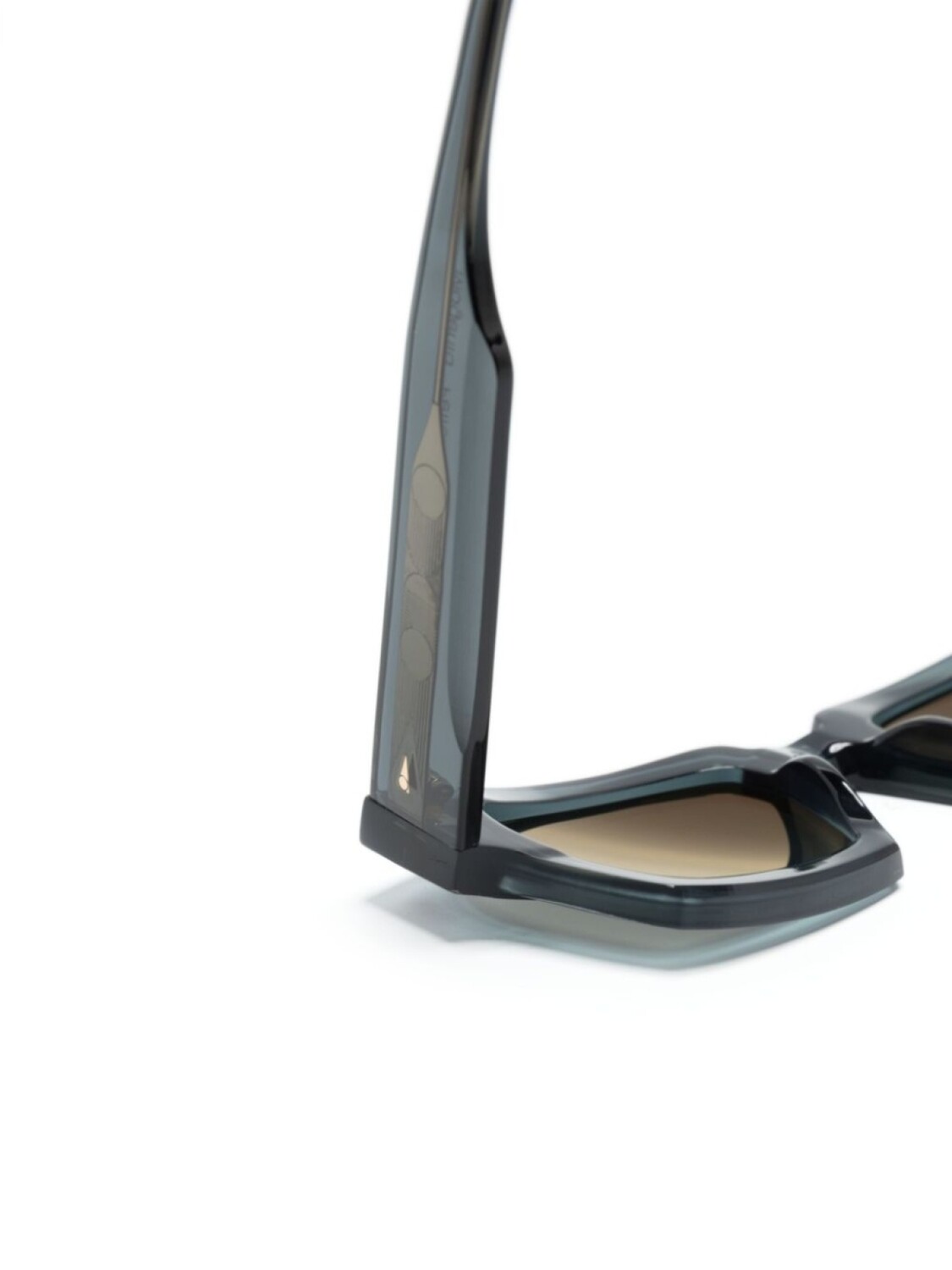 Сине-серый, ацетат, прозрачный материал, квадратная оправа, серые линзы, скульптурные дужки, дужки с закругленными концами, В комплект входит защитный чехол для очков.