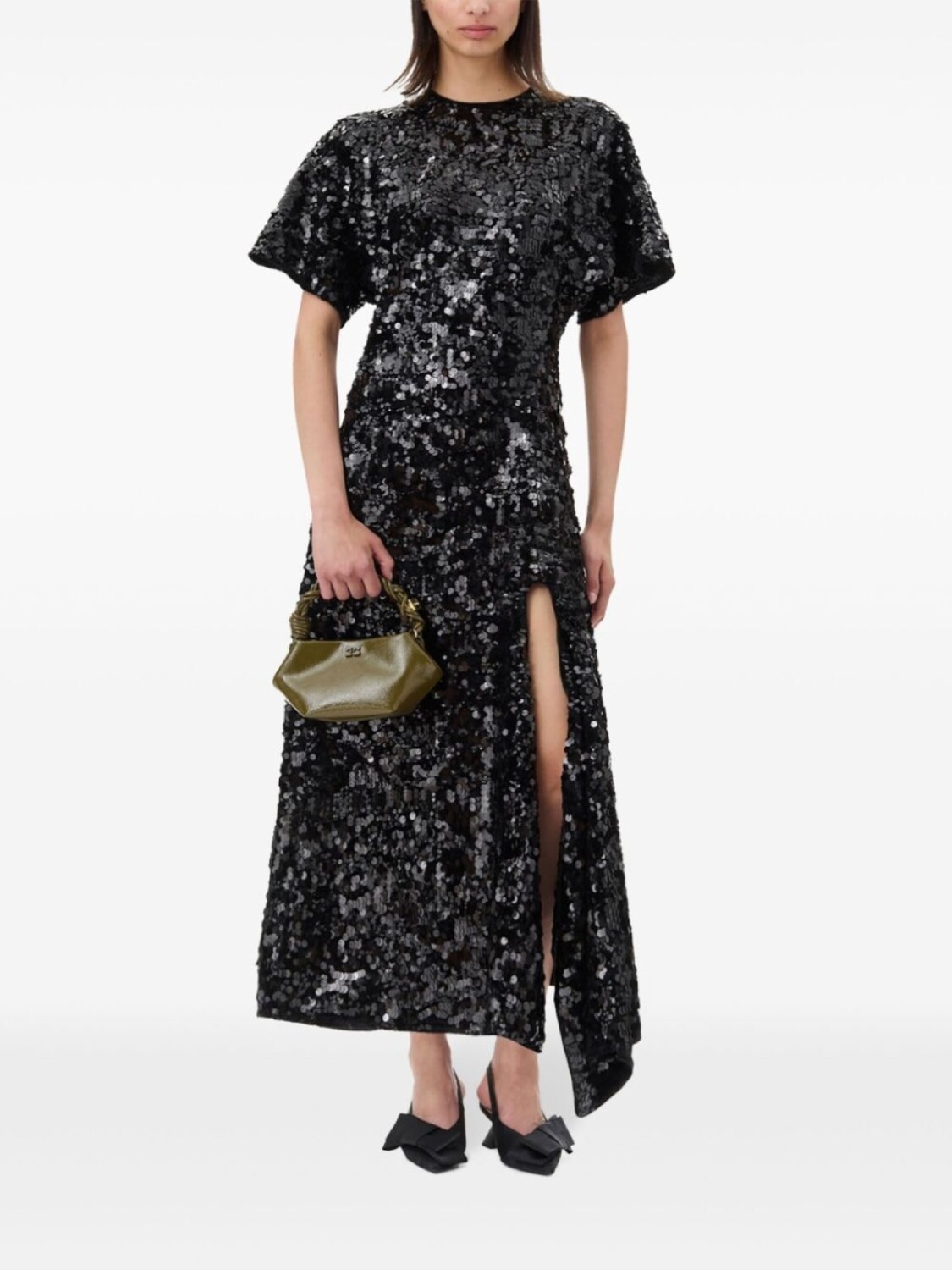 Бархатное платье с пайетками GANNI, черный 44 112₽