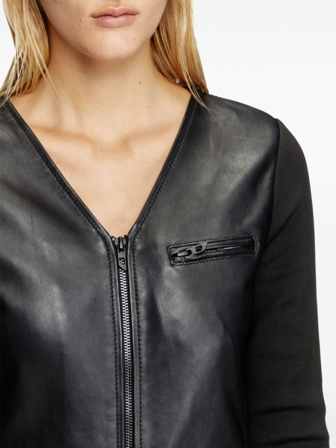 Черный, овечья кожа, двусторонняя молния, V-образный вырез, длинные рукава, два прорезных кармана сбоку, прямой подол, средней длины, Кожа в составе этого товара сделана на фабрике, сертифицированной организациями Leather Working Group (LWG) или ICEC. Это гарантирует, что производитель минимизировал негативное влияние материала на окружающую среду., Узнать больше о том, какие товары получают отметку «Ответственный выбор», можно здесь.