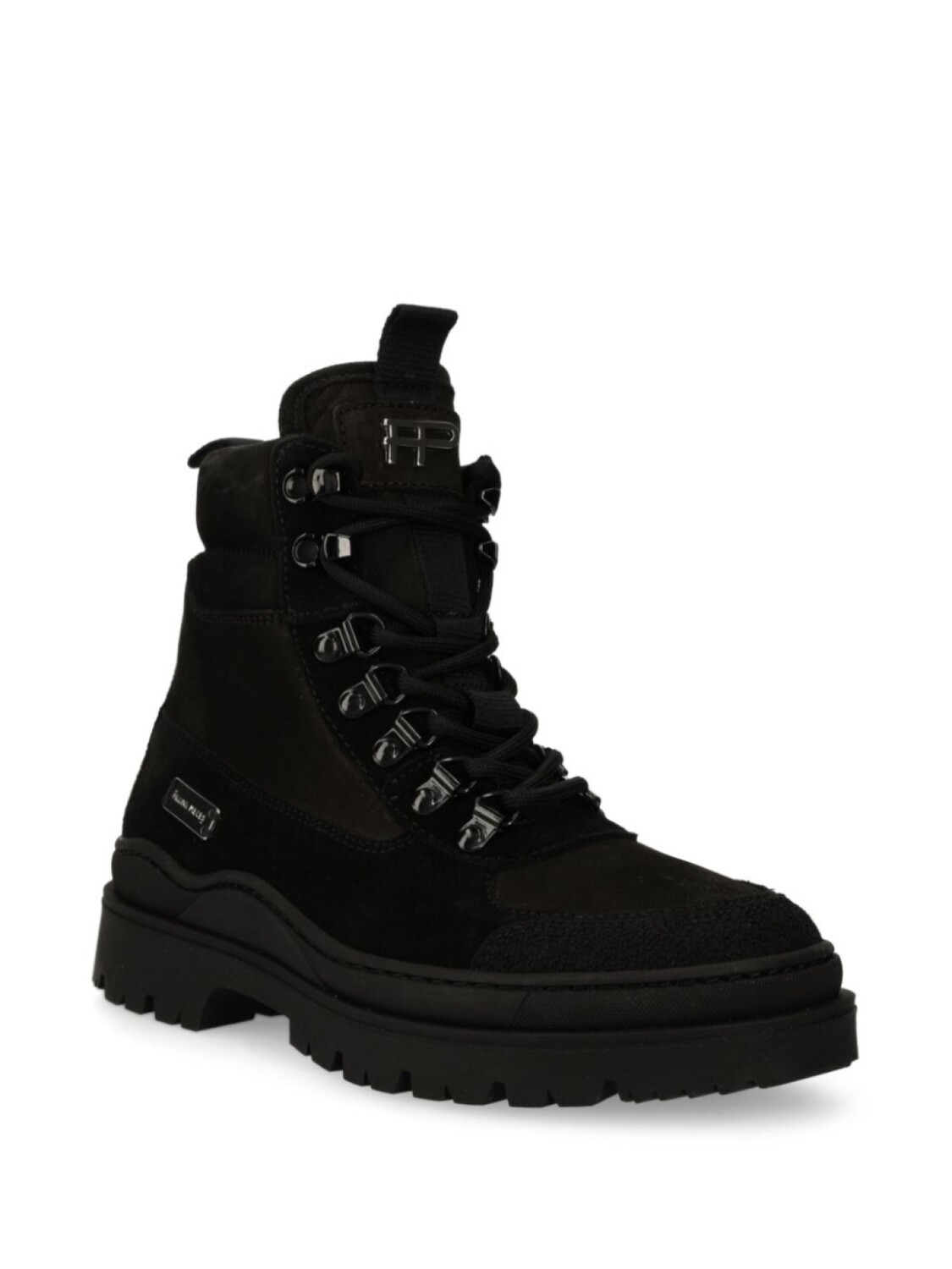 Черный, замша, серебристый металлический логотип, шнуровка спереди, закругленный носок, массивная резиновая подошва