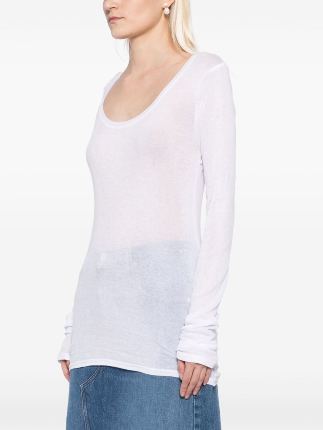 Белый хлопковый трикотаж с длинными рукавами, круглым вырезом, прямым подолом