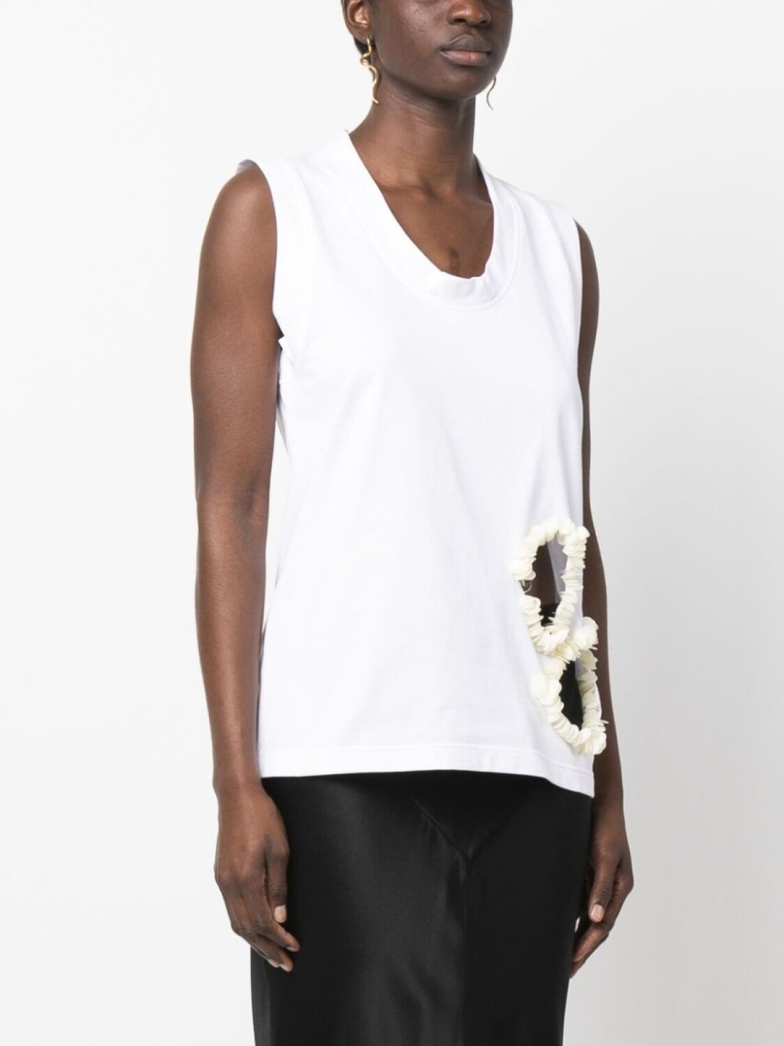Белый, хлопок, ткань джерси, вырезные детали, U-образный вырез, без рукавов и прямой подол.