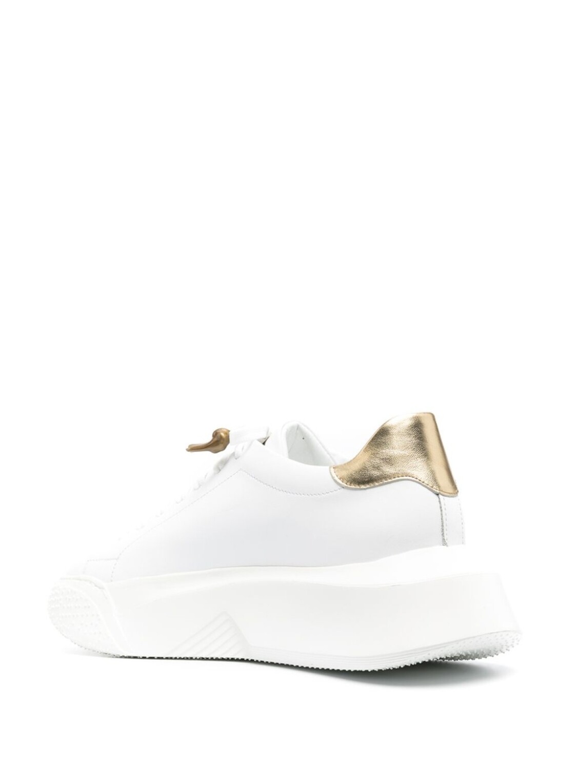 Логотип сбоку, шнуровка спереди, закругленный носок и плоская подошва.