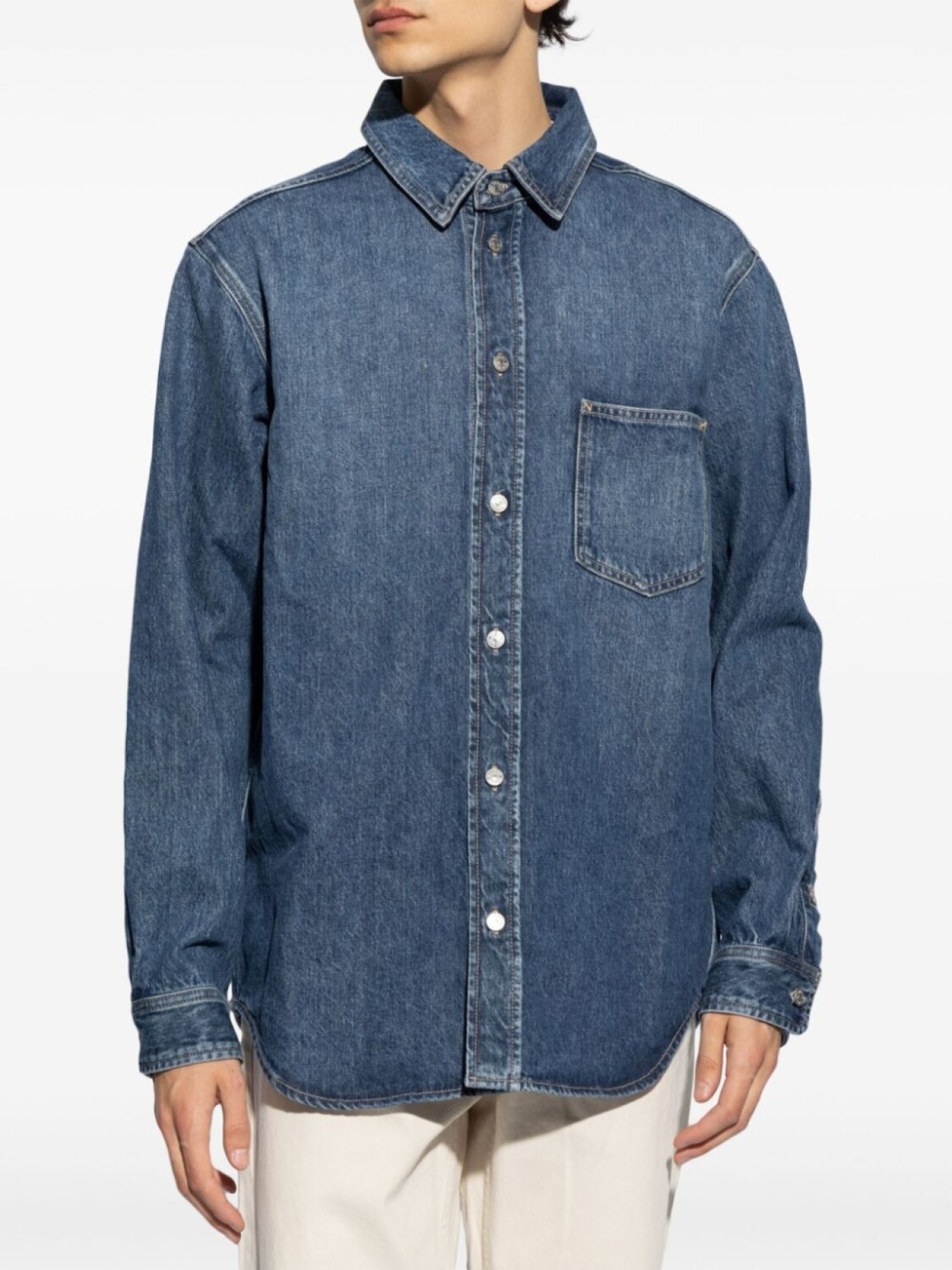 Подробнее о товаре: • синий • органический хлопок • деним • темный оттенок денима • застежка на пуговицах спереди • классический воротник • нагрудный накладной карман • длинные рукава • манжеты на пуговицах • закругленный подол сзади • Ответственный выбор: В составе этого товара есть органический хлопок. Его производитель не использует химические вещества, пестициды и искусственные удобрения и внедряет методы, которые помогают сохранить биоразнообразие, улучшают качество почвы и сокращают потребление воды.