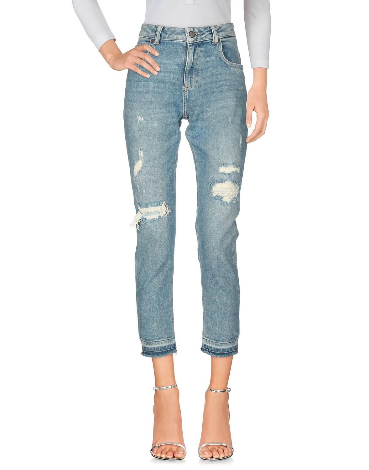 Деним, рваная ткань, выцветший, логотип, кожаные аппликации, одноцветное изделие, средняя степень стирки, высокая талия, застежка сзади, пуговицы, молния, множество карманов, бахрома по низу, содержит нетекстильные части животного происхождения