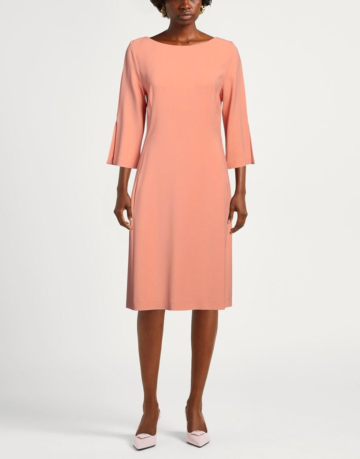Расклешенное платье, креп, одноцветное изделие, без аппликаций, вырез «лодочка», рукава 3/4, без подкладки, застежка-молния, множество карманов, стрейч