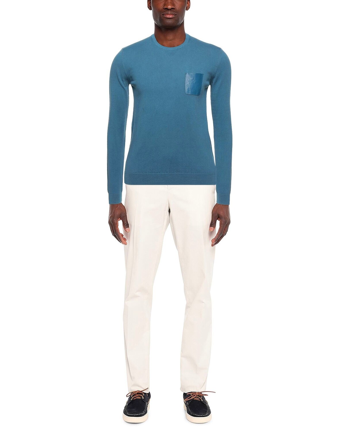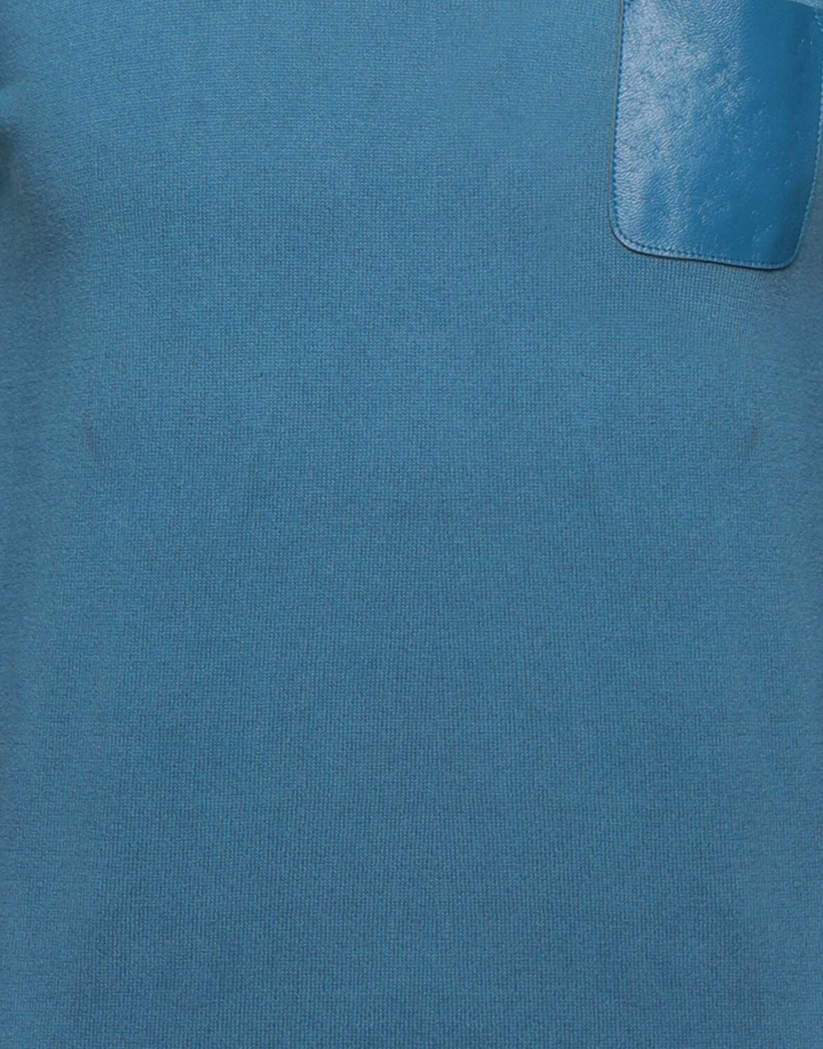 Трикотаж, кожаные аппликации, легкий трикотаж, круглый воротник, однотонное изделие, длинные рукава, один карман, содержит нетекстильные части животного происхождения