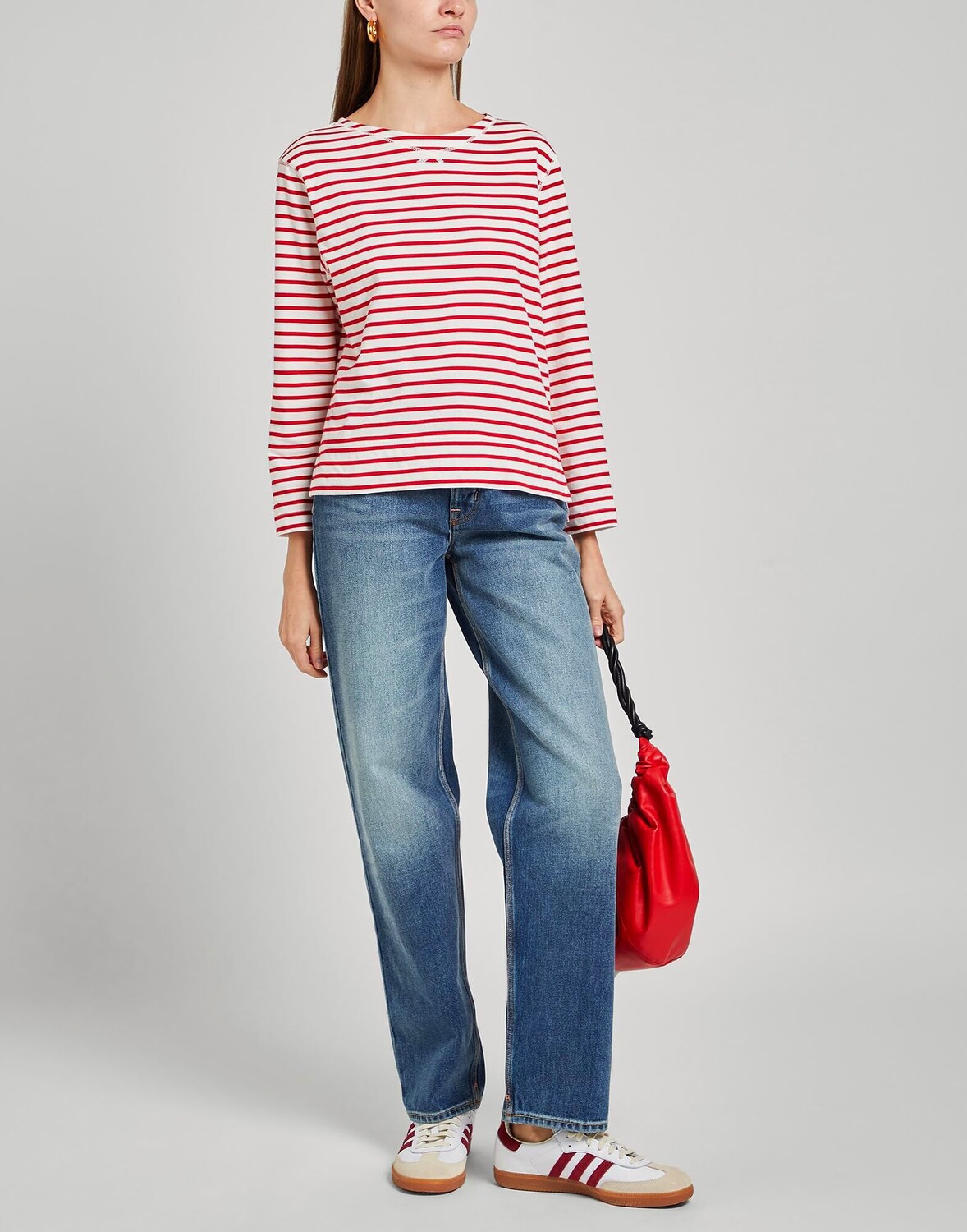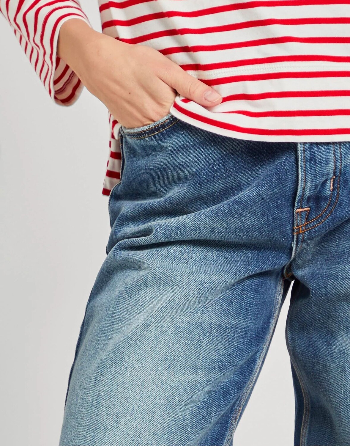 Деним, потертости, логотип бренда, одноцветное изделие, темная стирка, завышенная талия, прямые брючины, классический крой, застежка на пуговицы, пять карманов, модель прямого кроя