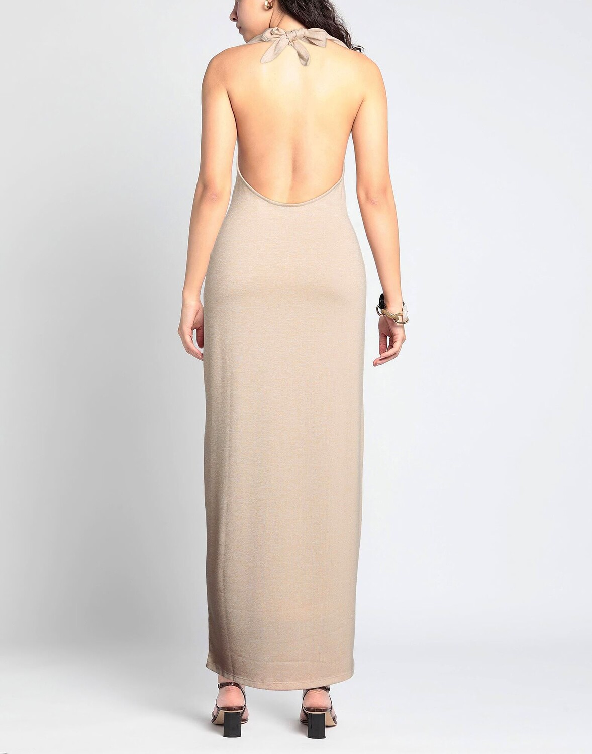 Трикотажное, легкий трикотаж, открытая спина, однотонное, глубокий вырез, без рукавов, без карманов, стрейч, облегающее платье