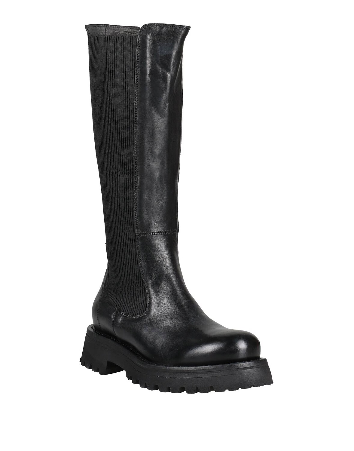 Кожа, без аппликаций, одноцветное изделие, подкладка кожа, эластичные вставки, круглый носок, плоская, подошва с резиновым тиснением, содержит нетекстильные части животного происхождения, массивные ботинки, большого размера