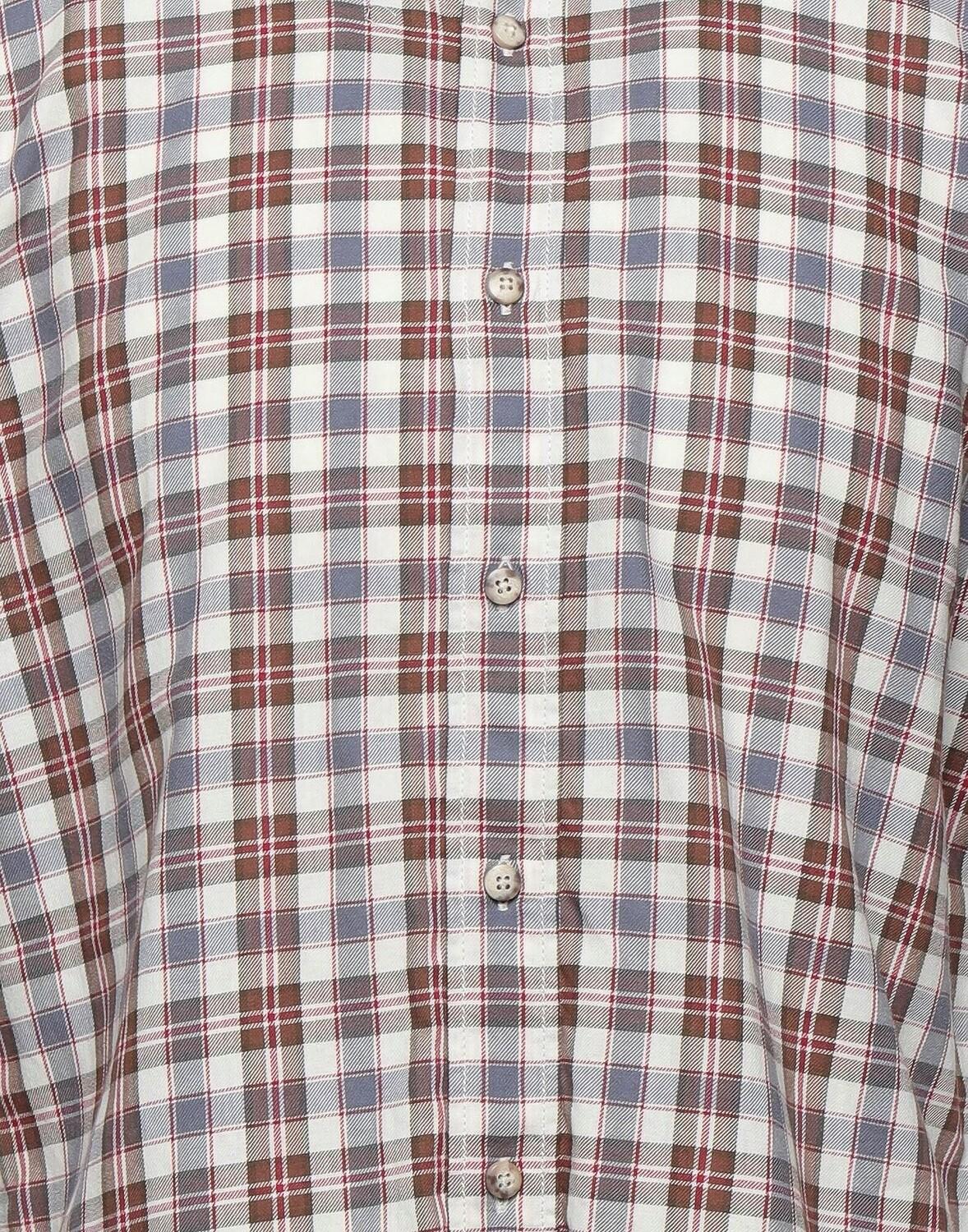 Полотняное переплетение, без аппликаций, клетка, классический вырез горловины, длинные рукава, манжеты на пуговицах, застежка на пуговицы, без карманов