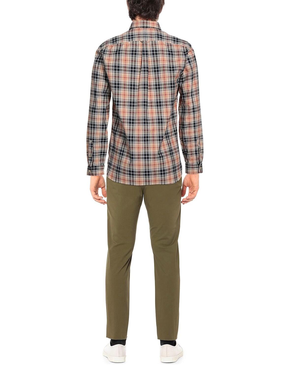 Полотняное плетение, без аппликаций, узор «тартан», классический вырез горловины, длинные рукава, манжеты на пуговицах, застежка на пуговицы, без карманов