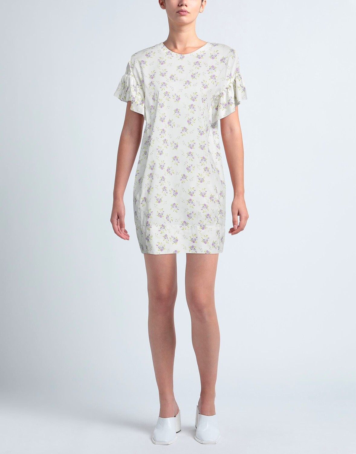 Полотняное переплетение, складки, цветочный дизайн, круглый вырез горловины, короткие рукава, рукава-крылышки, без подкладки, застежка-молния, множество карманов, модель-трапеция, маленький размер