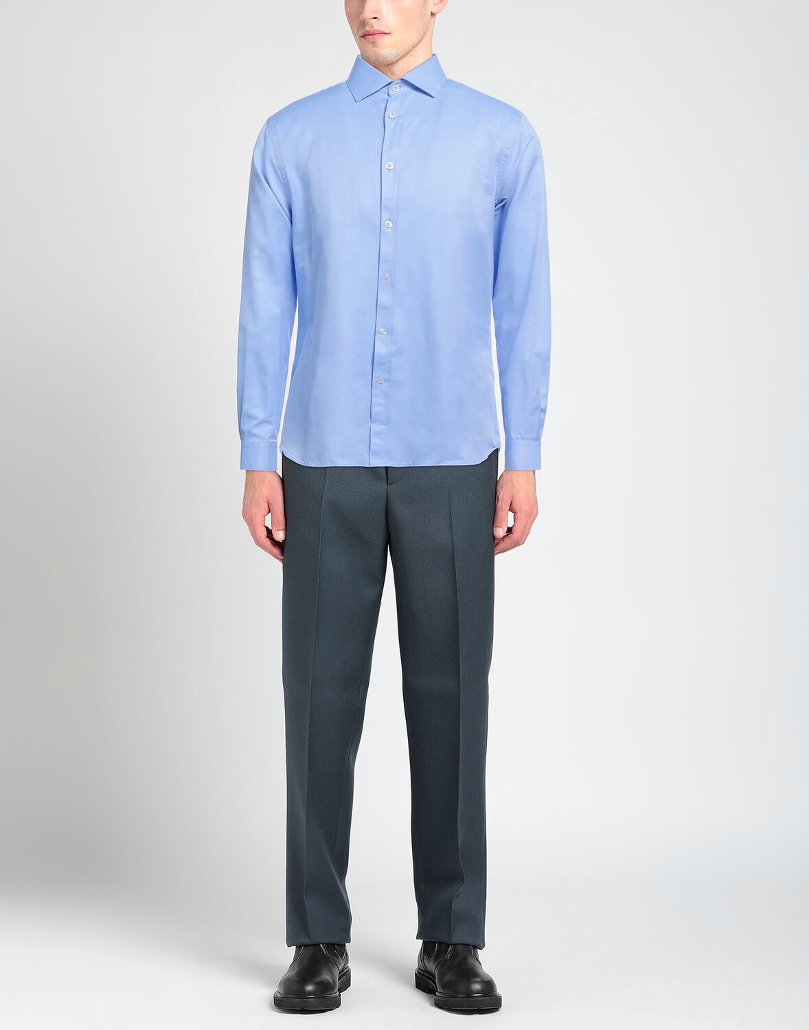 Полотняное переплетение, без аппликаций, одноцветное изделие, классический вырез горловины, длинные рукава, манжеты на пуговицах, застежка на пуговицы, без карманов