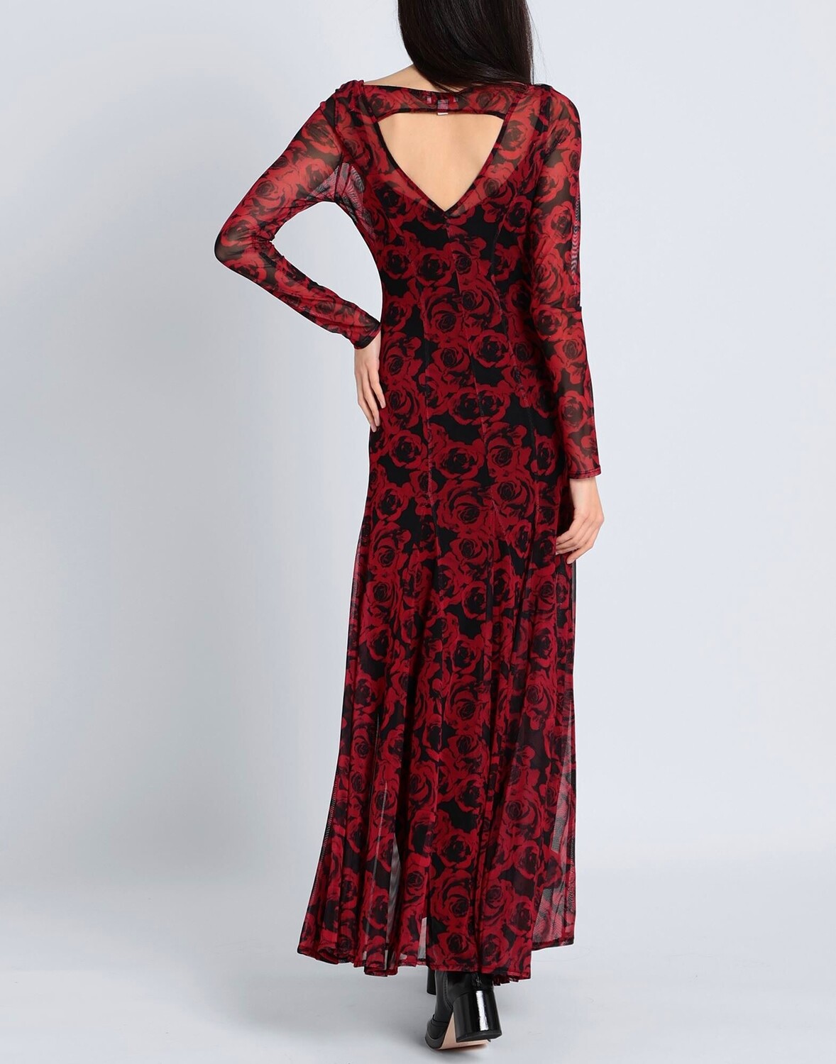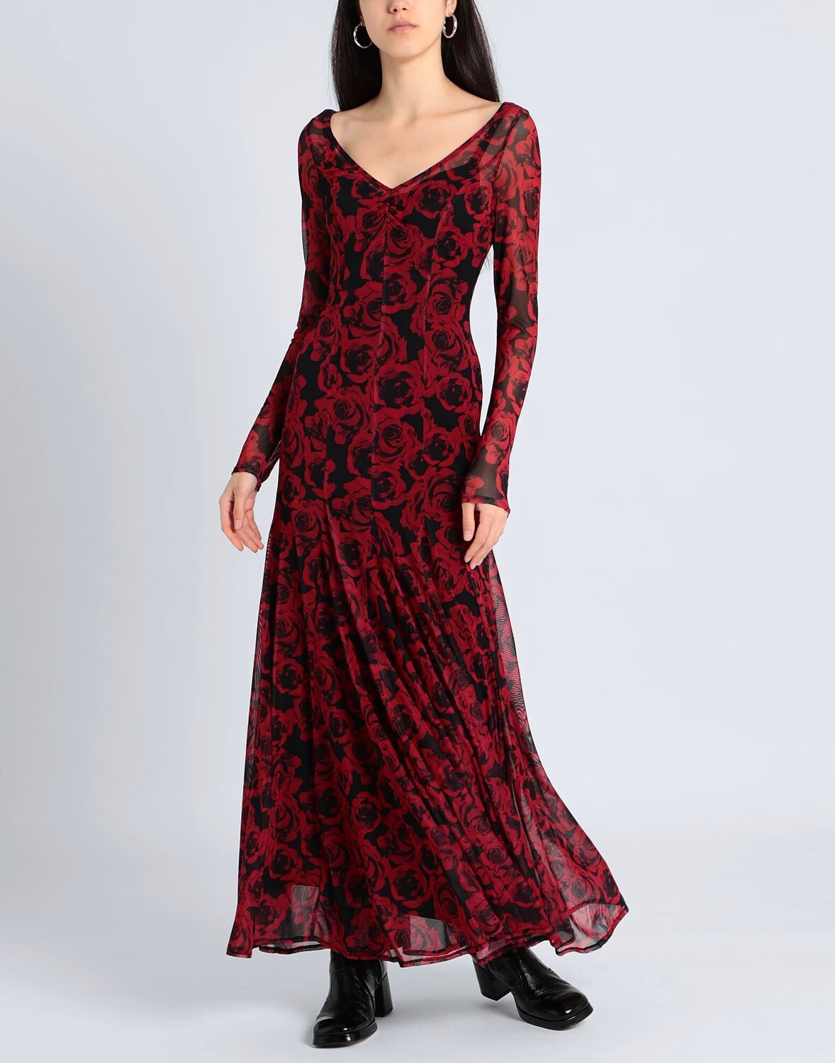 Тюль, оборки, цветочный дизайн, v-образный вырез, длинные рукава, скользящий силуэт, без карманов, стрейч, платье