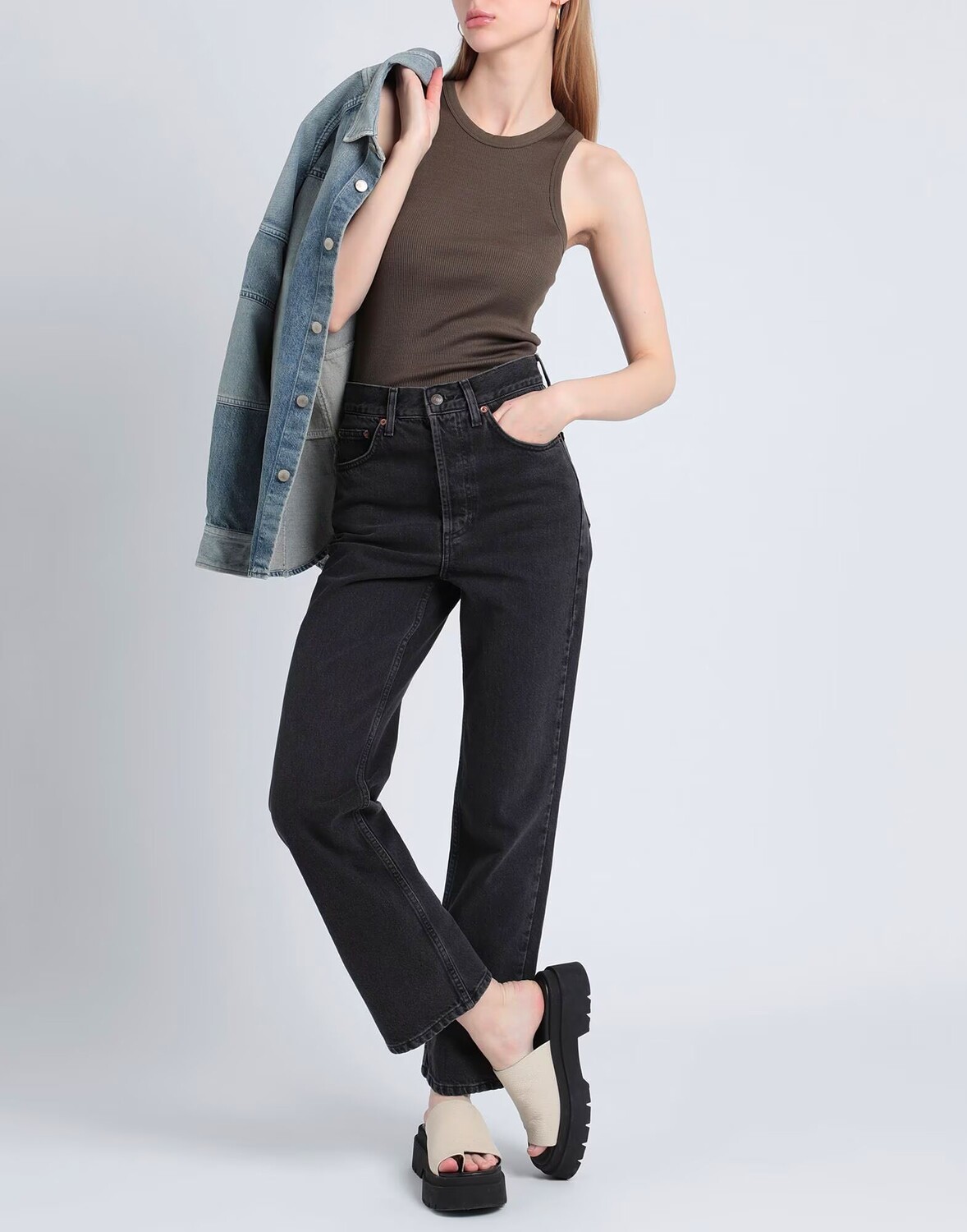 Деним, выцветший, без аппликаций, одноцветное изделие, цветная стирка, завышенная талия, шлевки для ремня, прямые брючины, стандартный крой, потайные пуговицы, пять карманов, модель прямого кроя