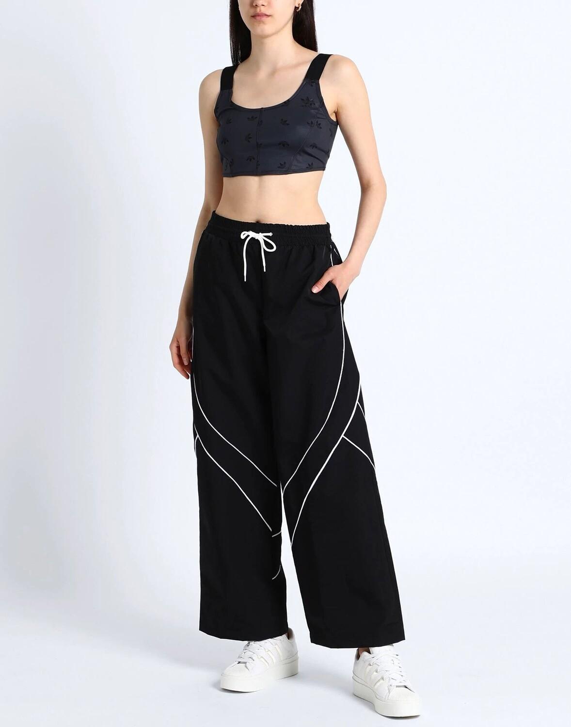 Техническая ткань, оборки, двухцветное изображение, завышенная талия, резинка на талии, широкие брючины, удобная посадка, застежка на шнурок, множество карманов, брюки