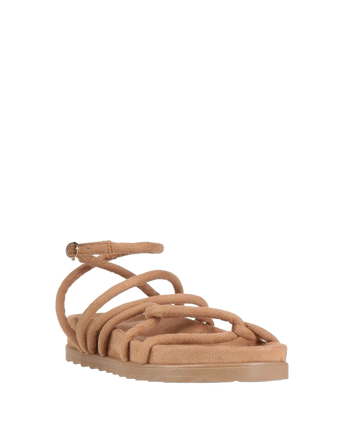 Эффект замши, без аппликаций, одноцветное изделие, внутри на подкладке, ремешок на щиколотке с пряжкой, скругленный носок, без каблука, резиновая подошва, сандалии с ремешком на щиколотке