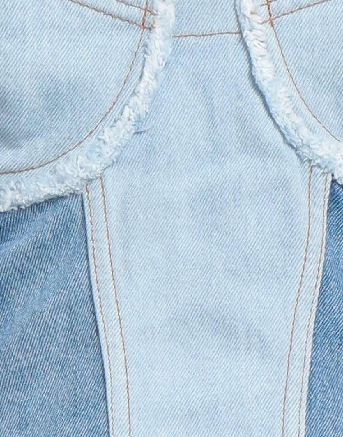 Корсет, джинсовая ткань, потертости, без аппликаций, одноцветное изделие, средняя стирка, глубокий вырез, застежка-молния, без карманов, машинная стирка или химчистка, нельзя отбеливать, нельзя сушить в стиральной машине