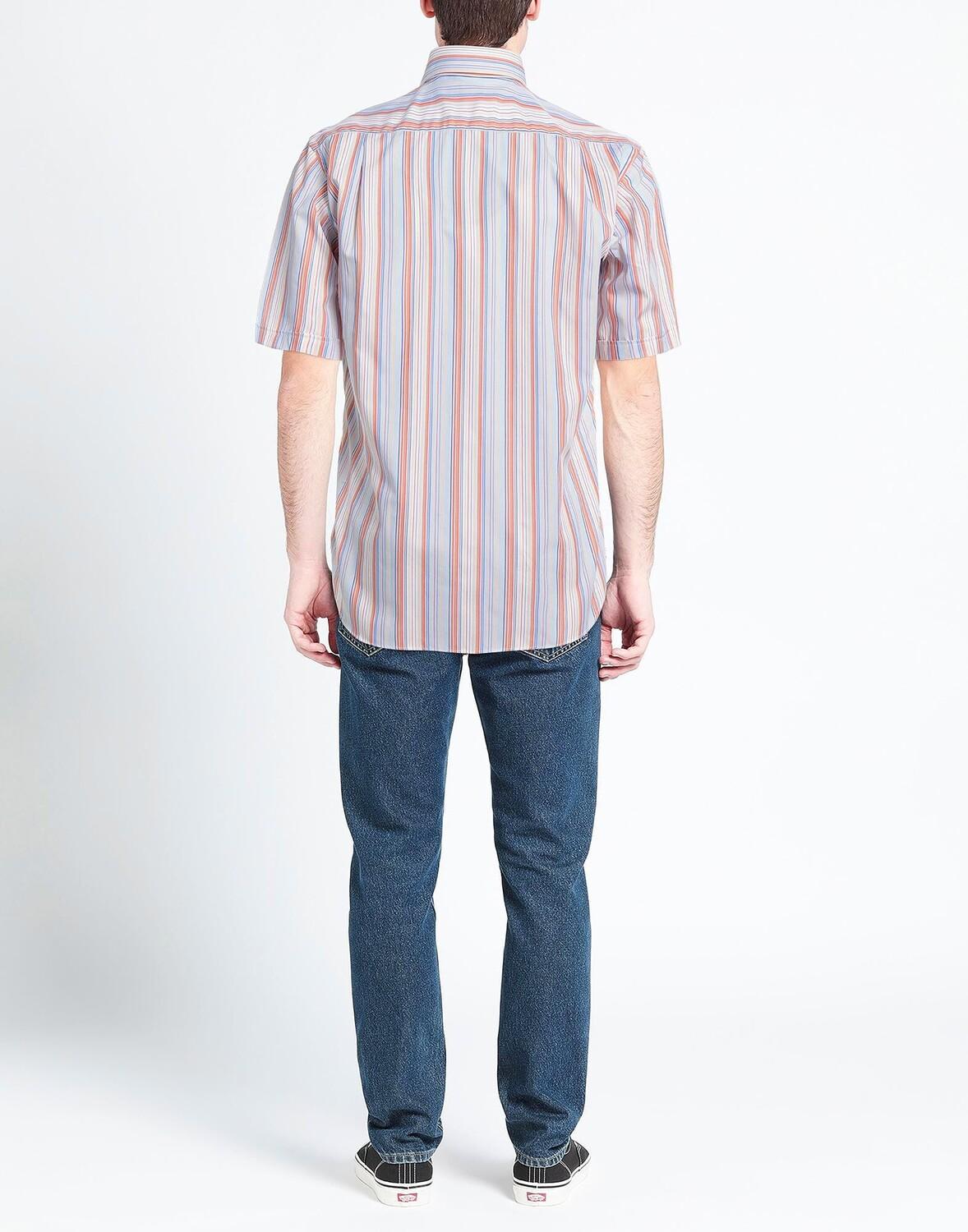 Ткань, без аппликаций, в полоску, воротник на пуговицах, короткие рукава, застежка на пуговицы, один нагрудный карман, рубашка стандартного кроя