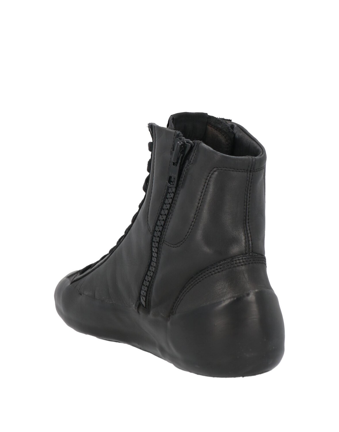 Кожа, логотип бренда, одноцветное изделие, кожаная подкладка, застежка-молния, шнуровка, скругленный носок, без каблука, резиновая подошва, содержит нетекстильные части животного происхождения, высокие кеды и кроссовки