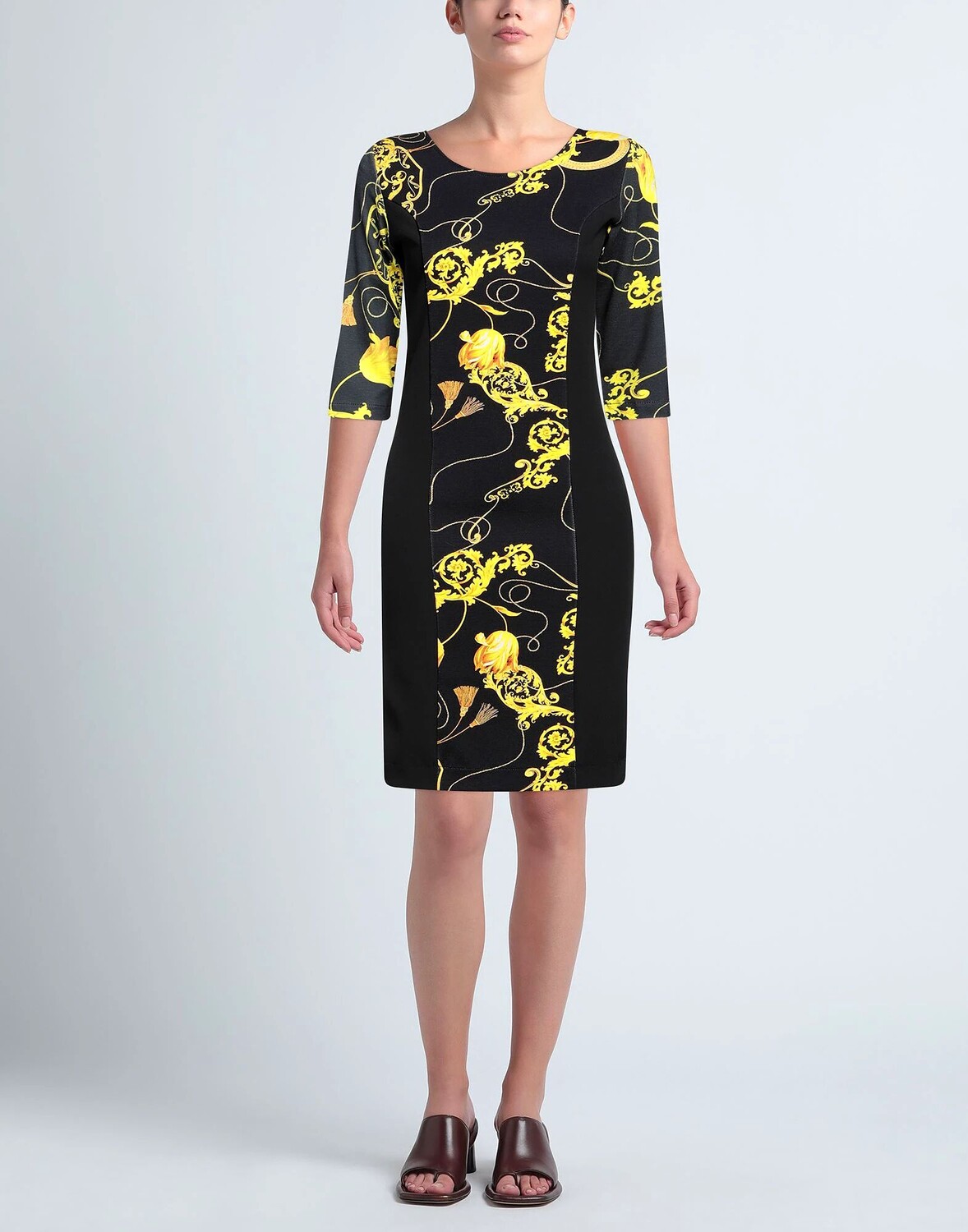 Джерси, креп, без аппликаций, цветочный принт, круглый вырез, рукава 3/4, застежка-молния, без карманов, стрейч, облегающее платье