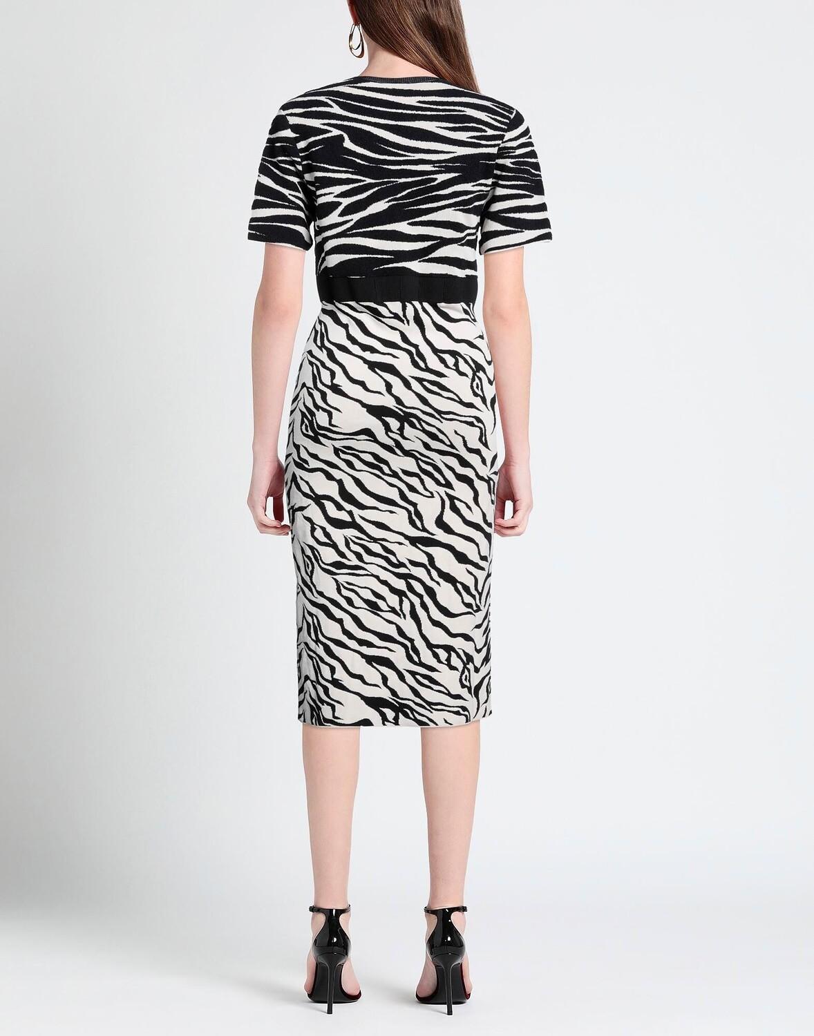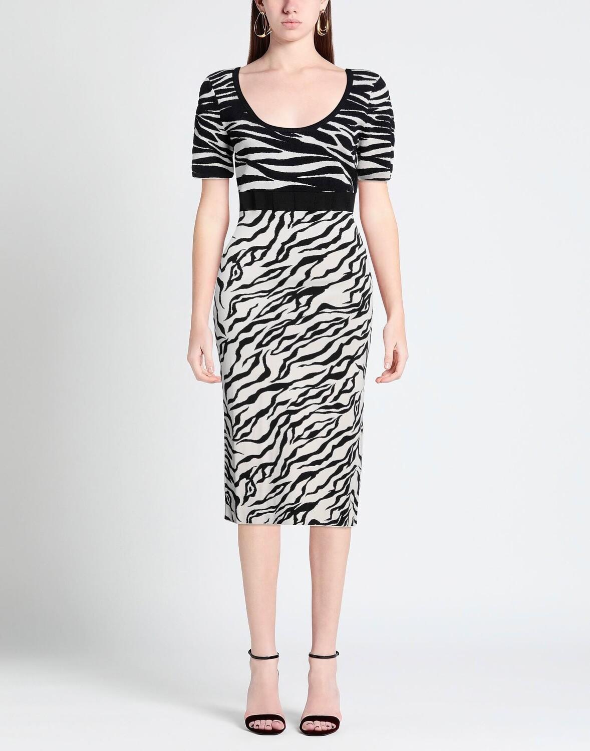 Трикотаж, легкая вязка, без аппликаций, полоска «зебра», круглый воротник, короткие рукава, без подкладки, без карманов, фасон «карандаш»