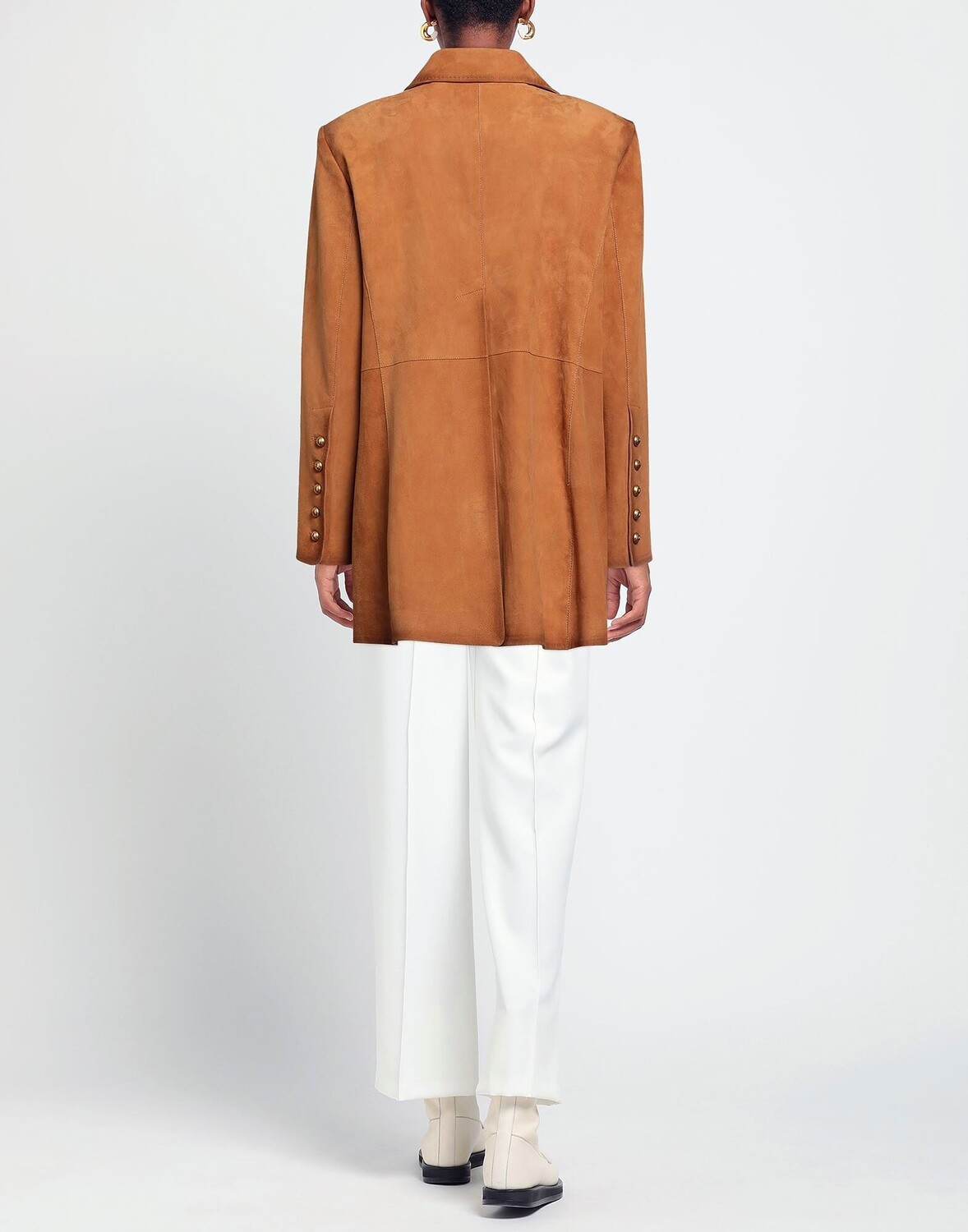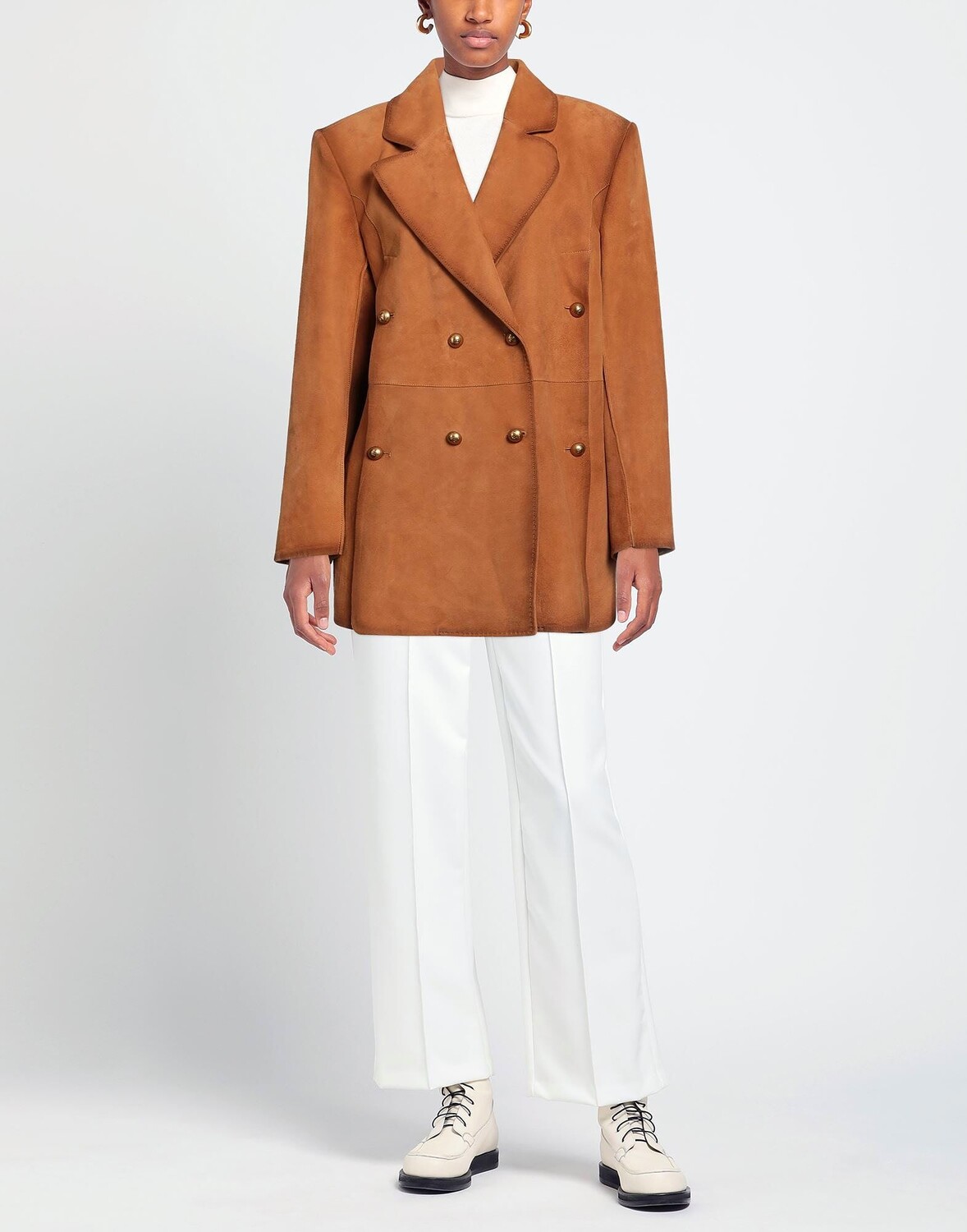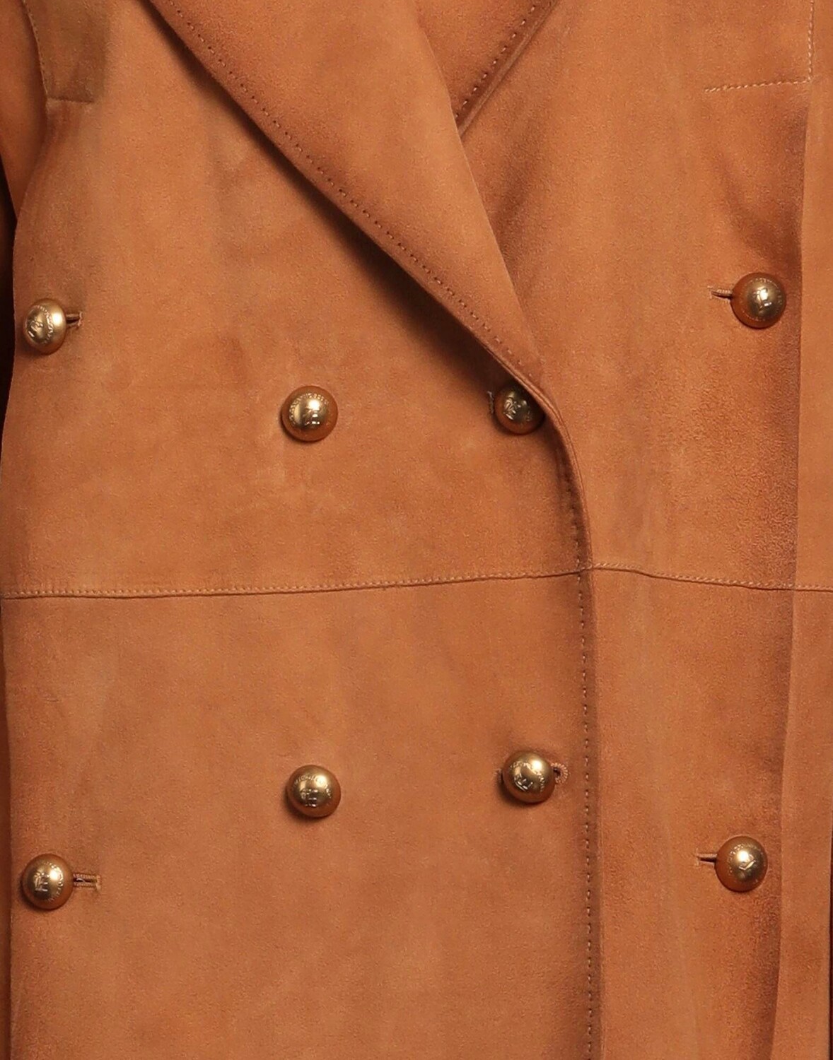 Кожа, эффект замши, логотип бренда, одноцветное изделие, воротник с лацканами, двубортный, длинные рукава, манжеты на пуговицах, внутри на подкладке, пуговицы, без карманов, содержит нетекстильные части животного происхождения, двубортный пиджак