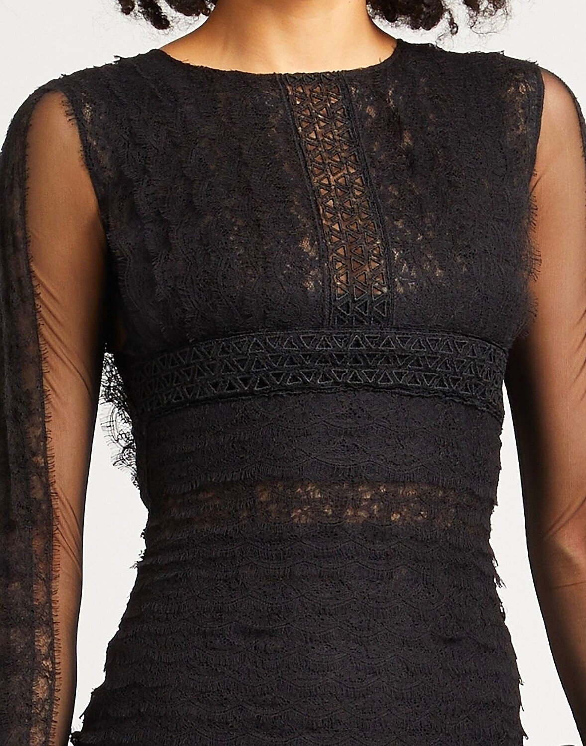 Кружево, тюль, без аппликаций, одноцветное изделие, круглый вырез горловины, длинные рукава, внутренняя часть на частичной подкладке, застежка-молния, без карманов, химчистка, нельзя сушить в стиральной машине, не отбеливать, платье-клеш