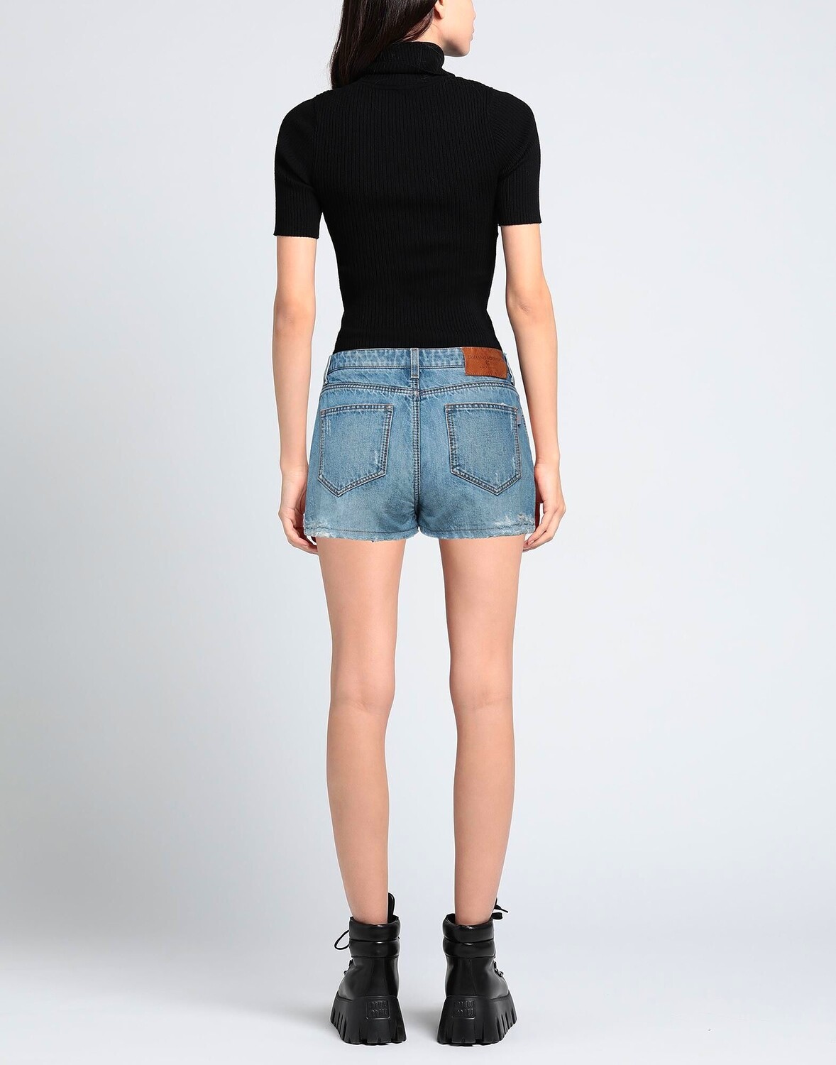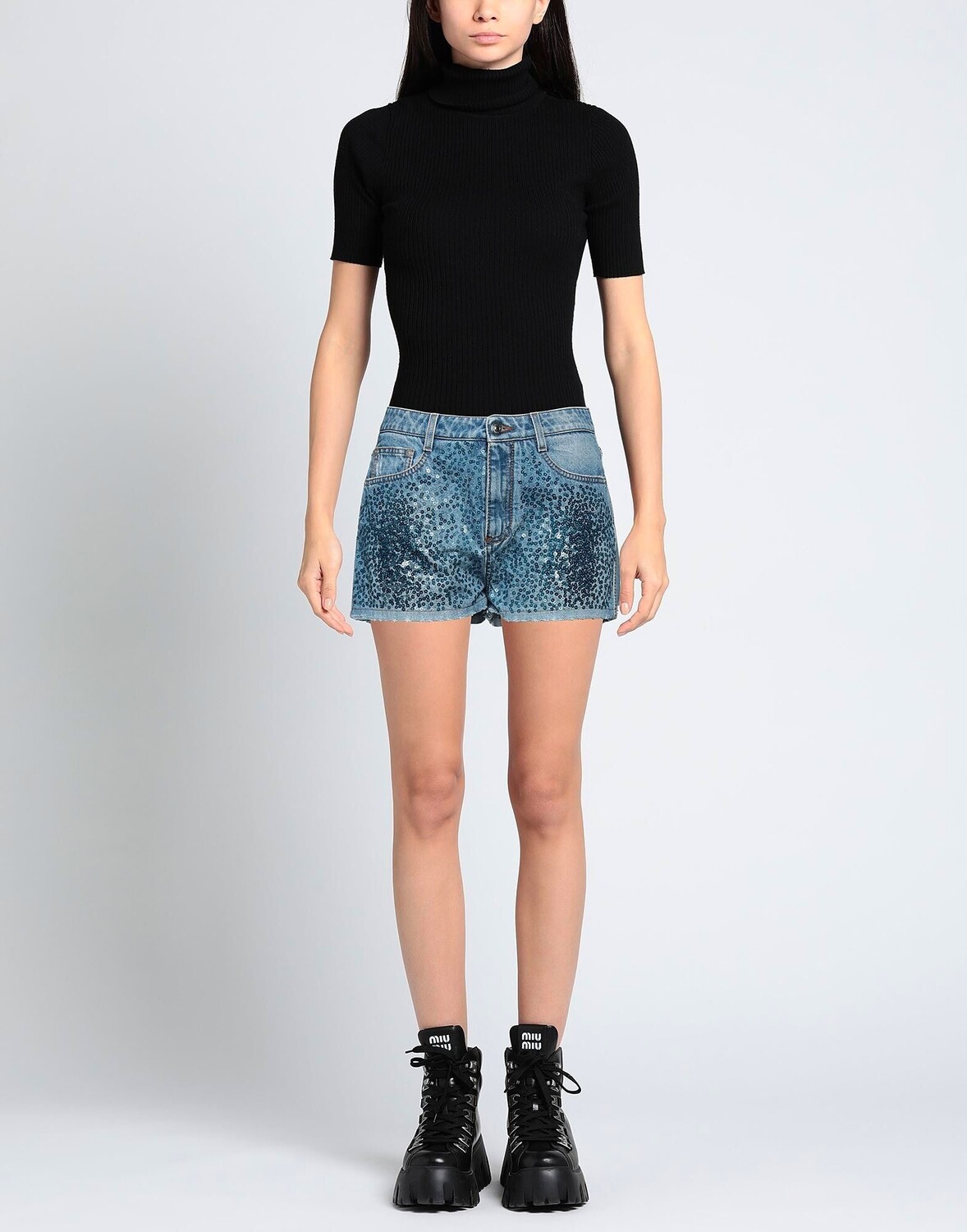 Деним, потертый, выцветший, логотип бренда, пайетки, одноцветное изделие, средняя стирка, высокая талия, петли для ремня, застежка-молния, множество карманов, ручная стирка, не отбеливать, нельзя сушить в стиральной машине, содержит нетекстильные части животного происхождения, горячая брюки