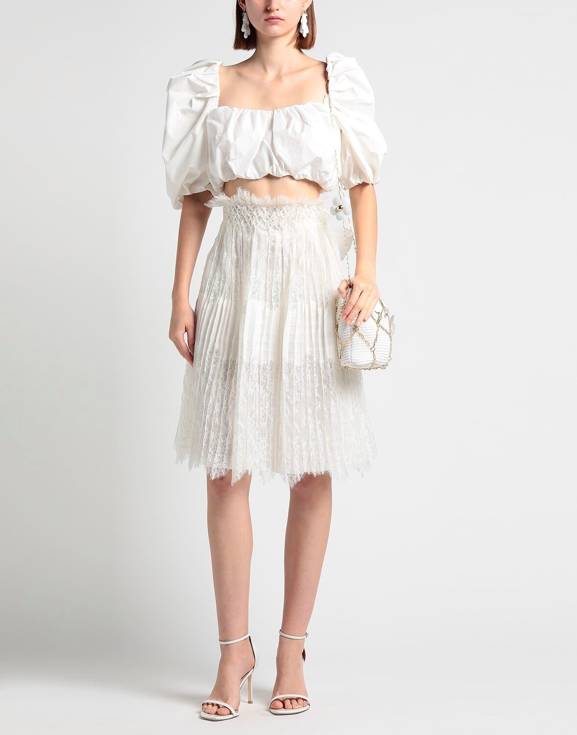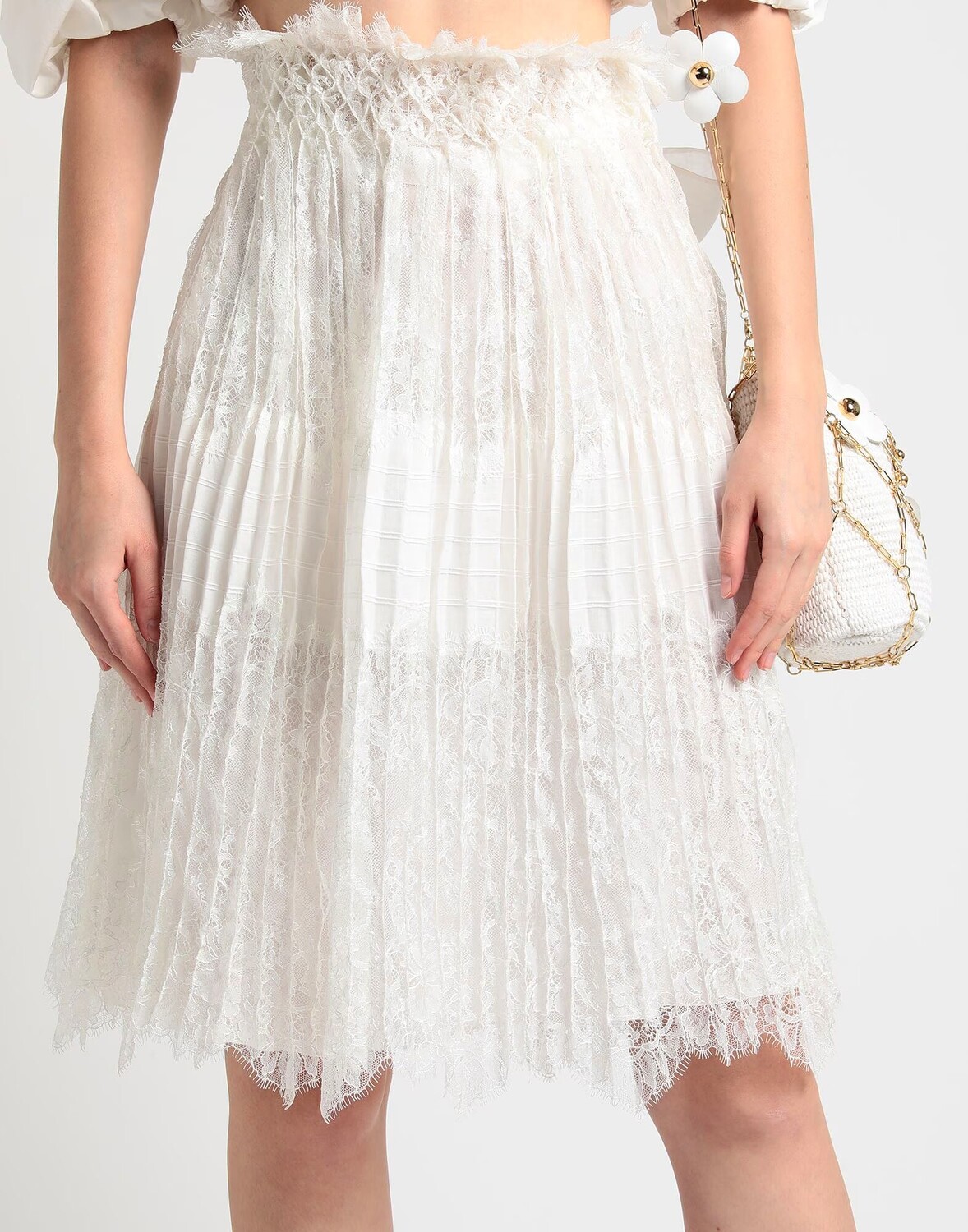 Кружево, плиссировка, бретельки, одноцветное изделие, внутри на подкладке, застежка-молния, завязка на завязках, без карманов, химчистка, нельзя отбеливать, нельзя сушить в стиральной машине, нельзя гладить, плиссированная юбка