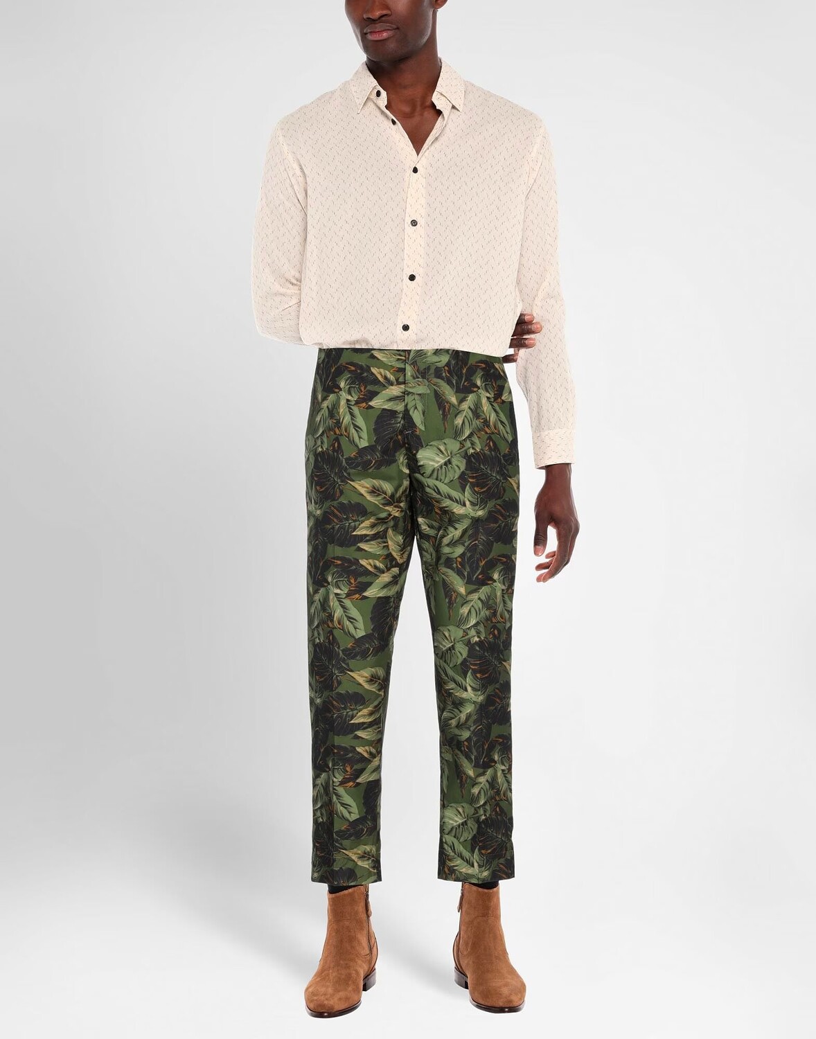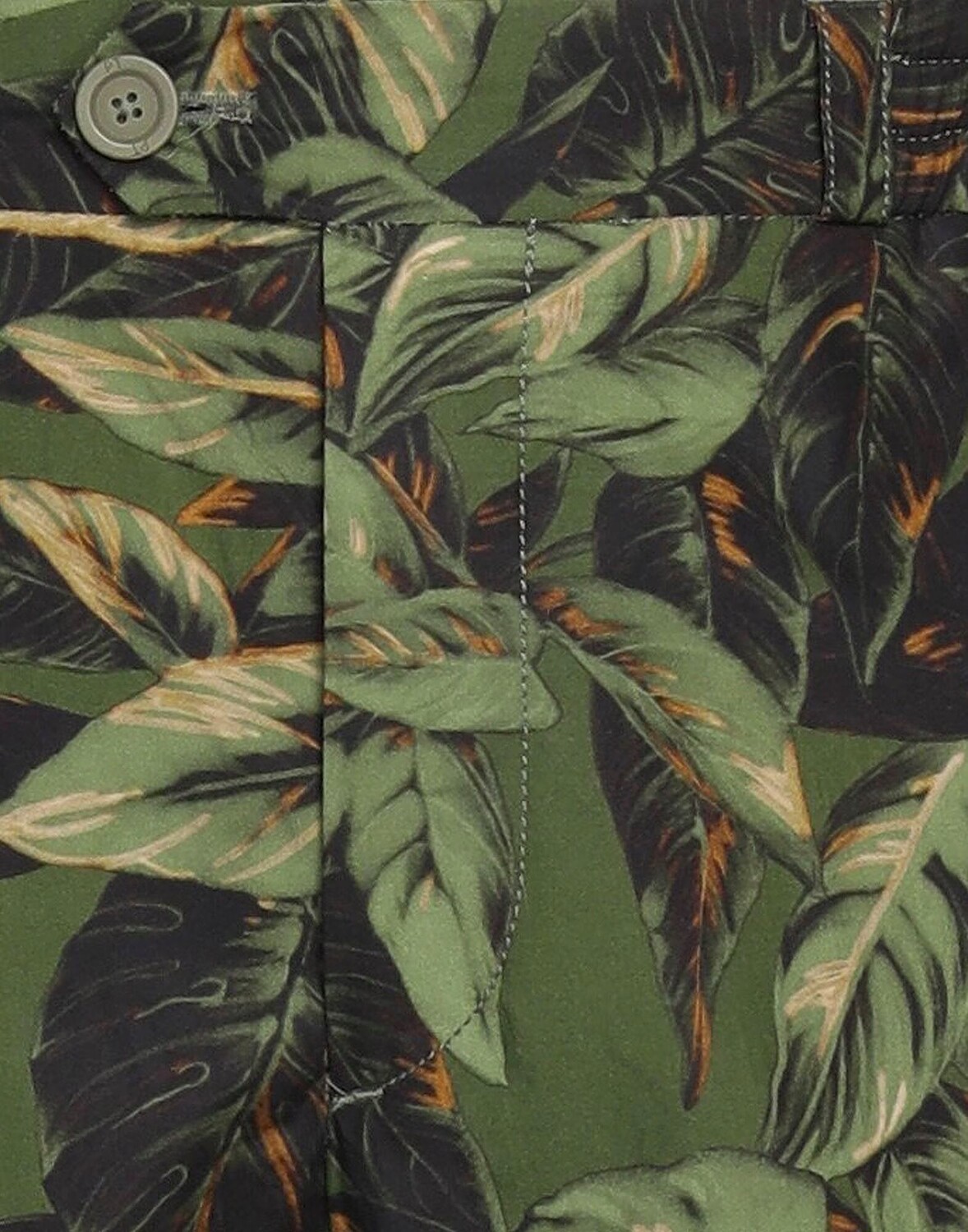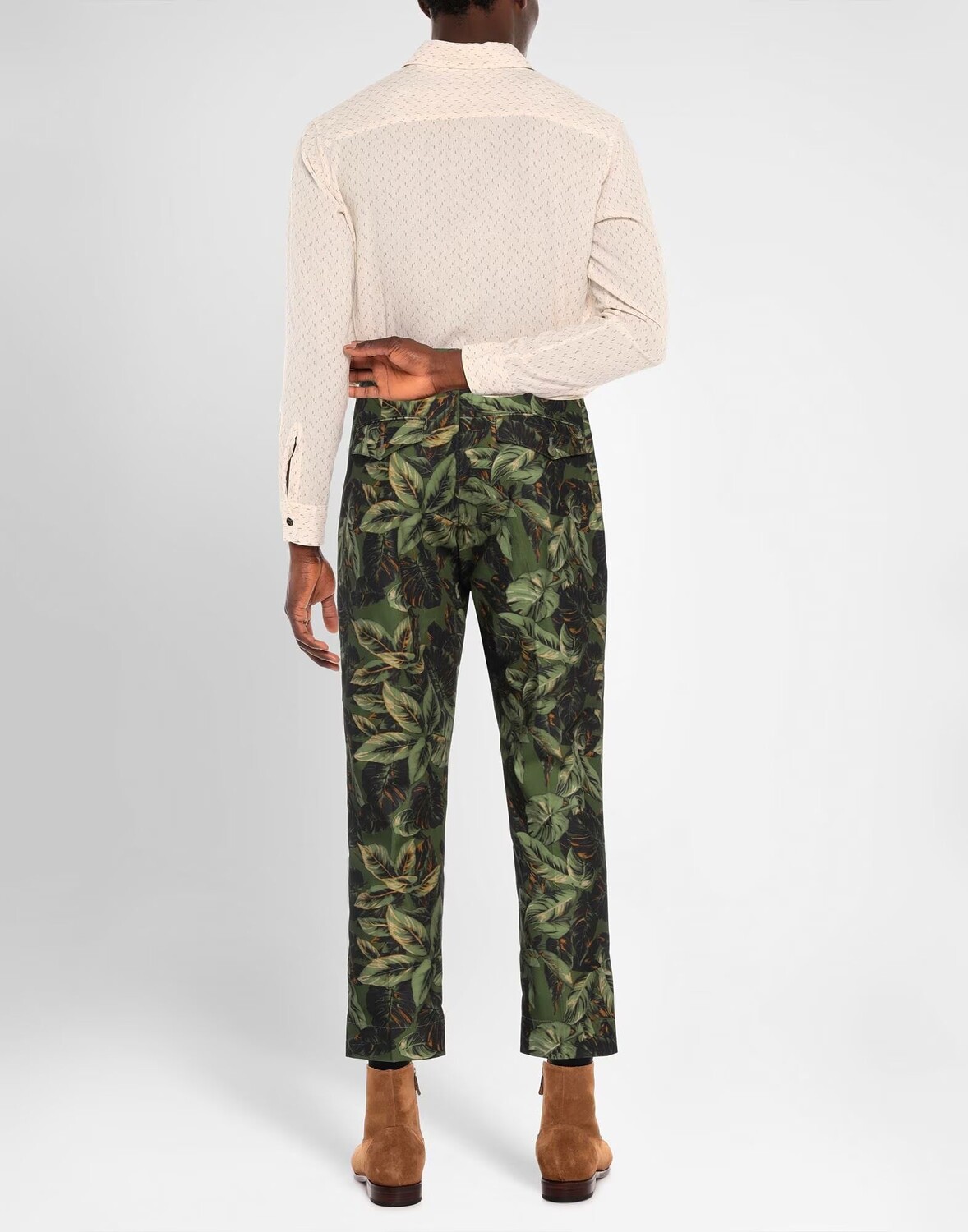 Полотняное переплетение, без аппликаций, цветочный дизайн, средняя посадка, зауженная брючина, стандартный крой, застежка на пуговицы, множество карманов, брюки