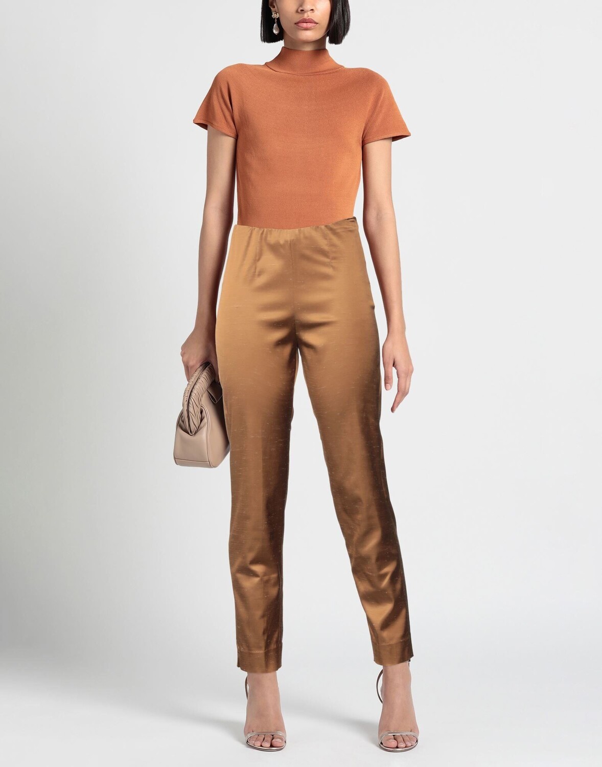 Сатин, без аппликаций, одноцветное изделие, завышенная талия, зауженные брючины, стандартный крой, застежка-молния, без карманов, стрейч, брюки