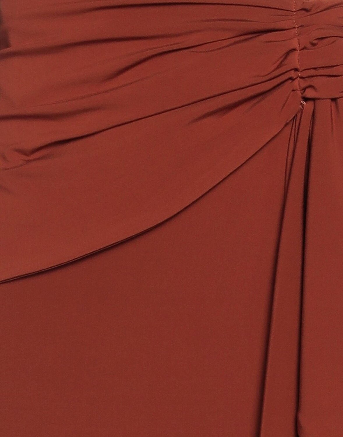 Джерси, оборки, одноцветное изделие, завышенная талия, внутренняя часть на частичной подкладке, разрез спереди, без карманов, стрейч, фасон-карандаш