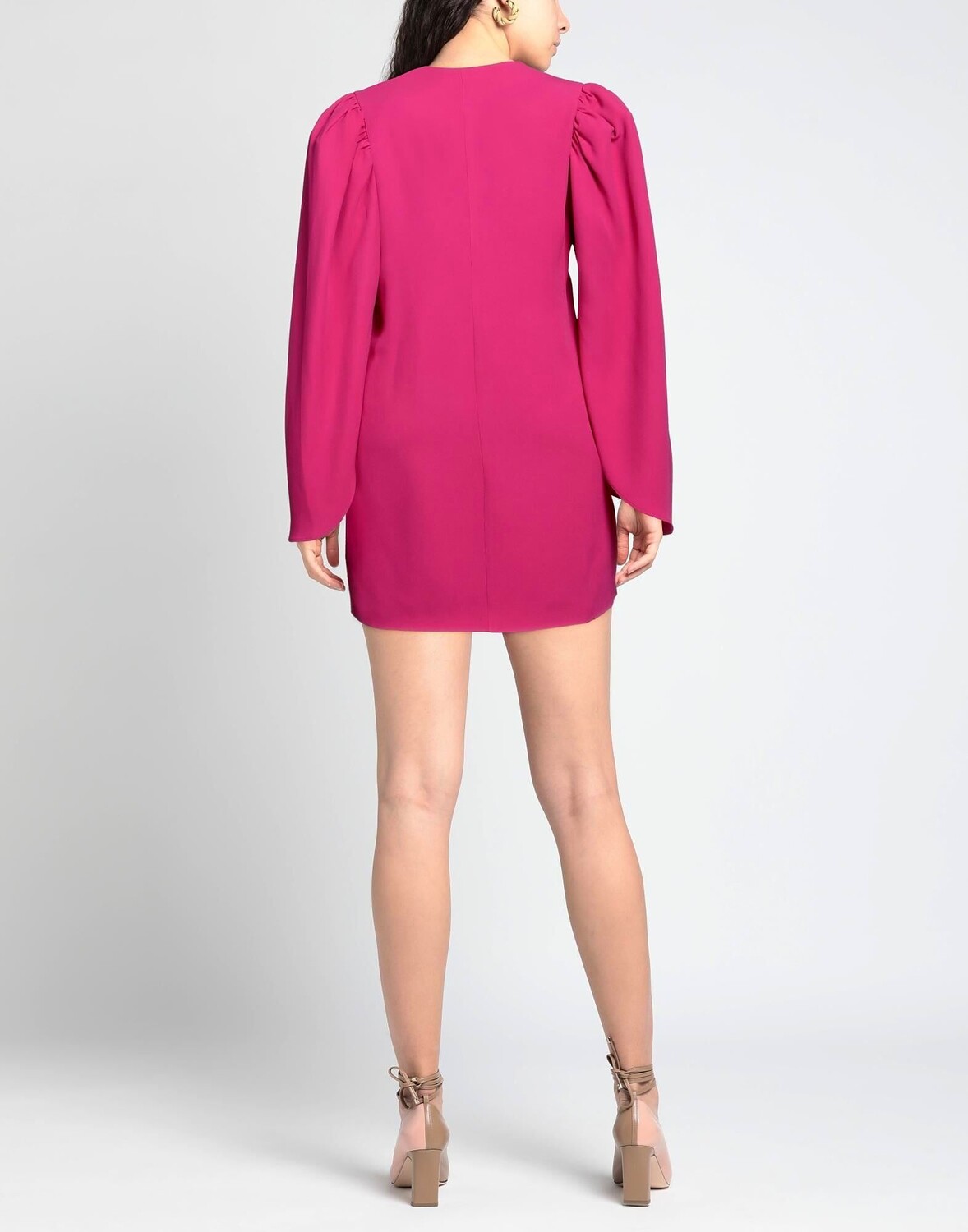 Креп, без аппликаций, одноцветное изделие, v-образный вырез, длинные рукава, рукава-буфы, внутри на подкладке, застежка-молния, без карманов, облегающее платье