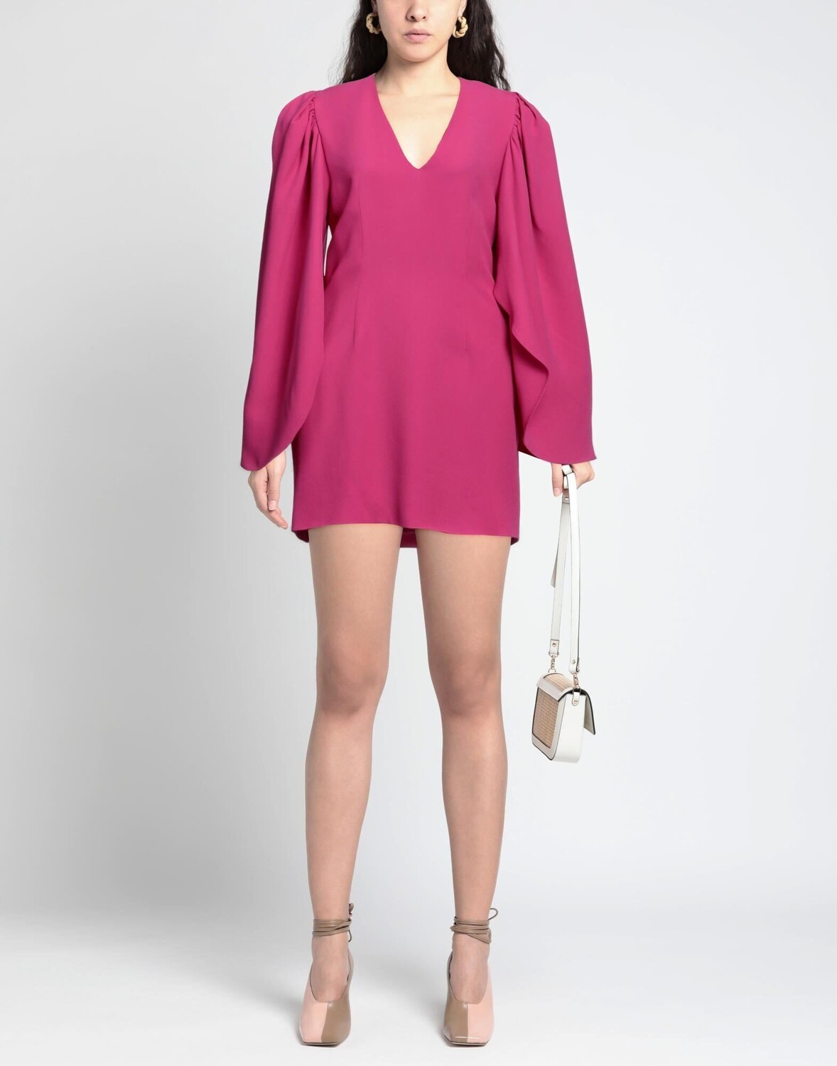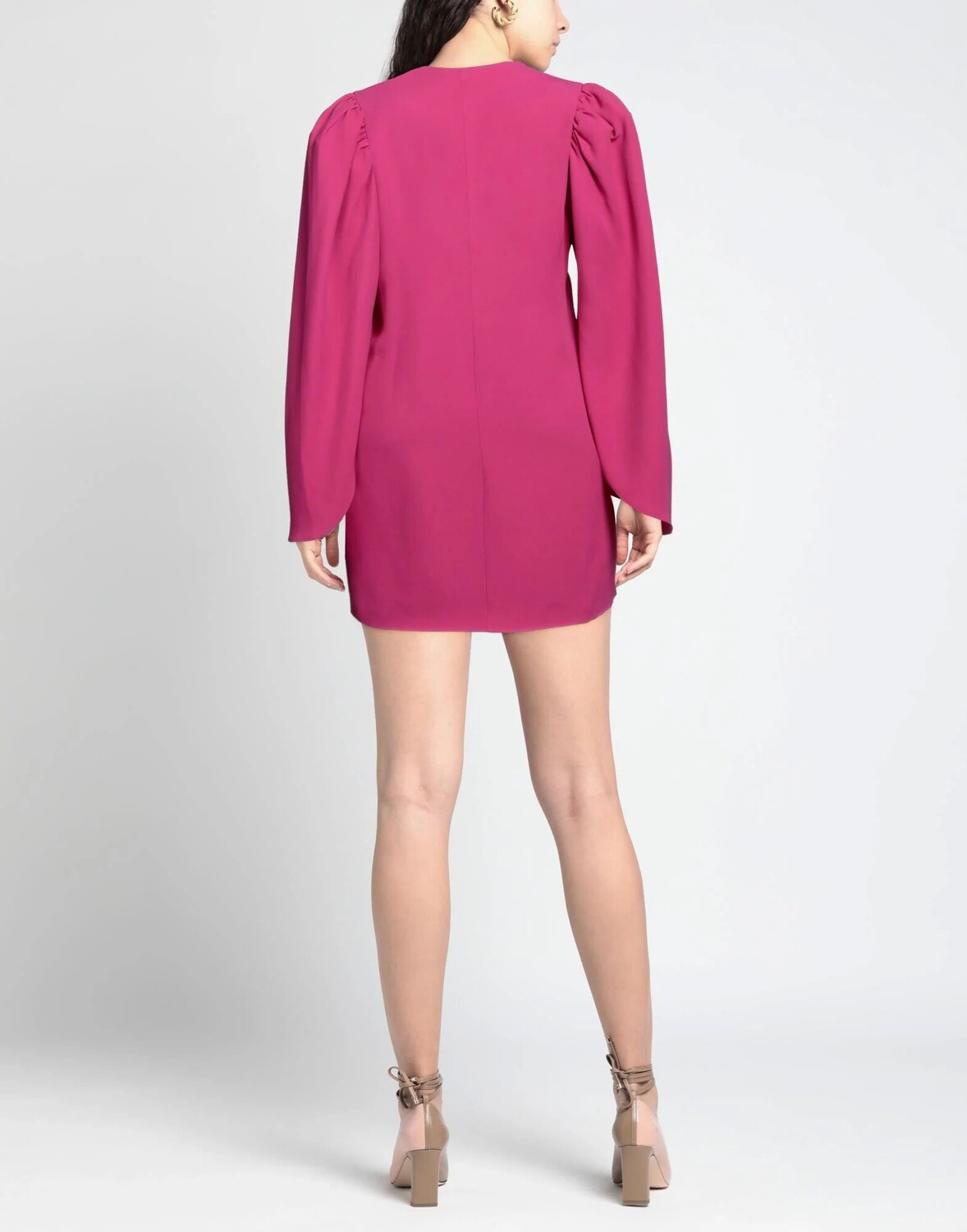 Креп, без аппликаций, одноцветное изделие, v-образный вырез, длинные рукава, рукава-буфы, внутри на подкладке, застежка-молния, без карманов, облегающее платье