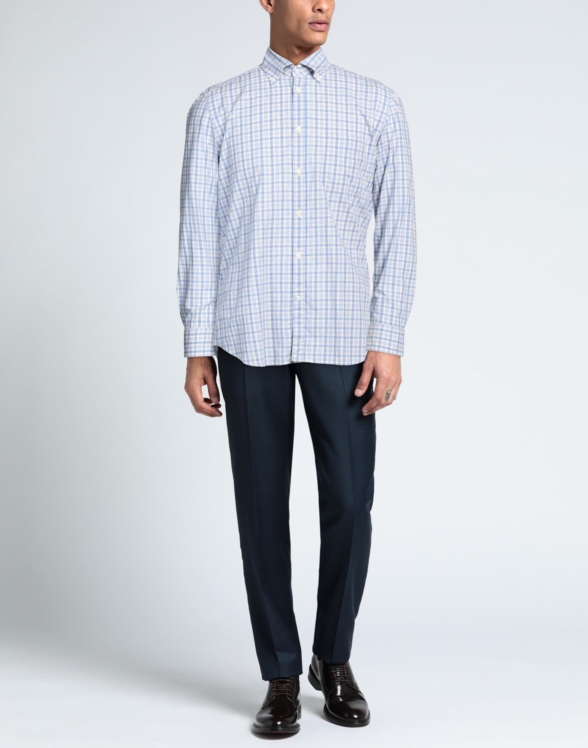 Полотняное переплетение, без аппликаций, узор «тартан», воротник на пуговицах, длинные рукава, пуговицы, без карманов