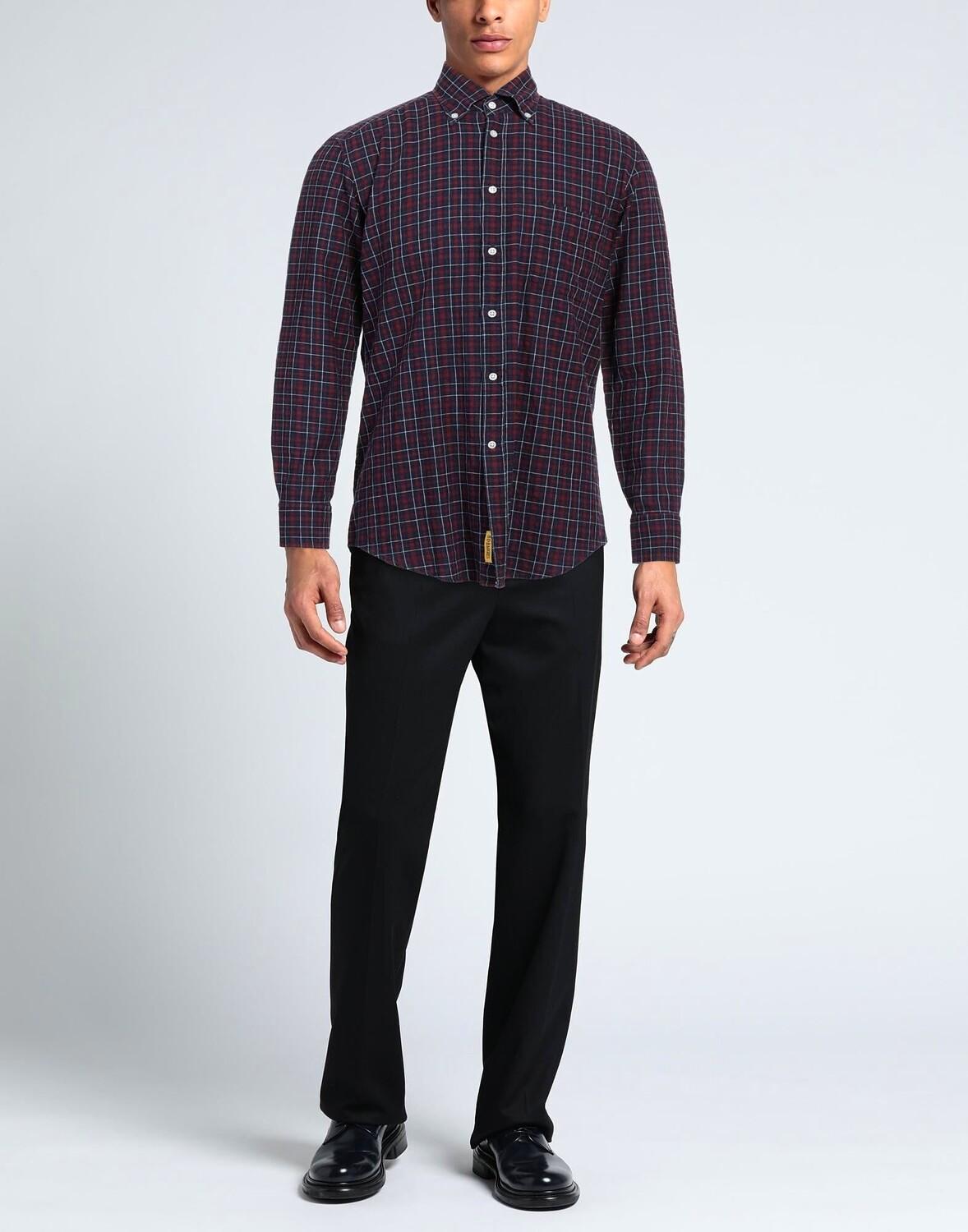 Полотняное переплетение, логотип бренда, узор в клетку «тартан», воротник на пуговицах, длинные рукава, манжеты на пуговицах, пуговицы, один нагрудный карман