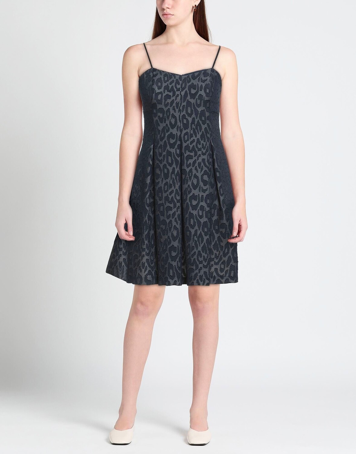 Жаккардовое, тканое, без аппликаций, двухцветное, v-образный вырез, без рукавов, застежка-молния, без карманов, нельзя стирать, не отбеливать, нельзя сушить в стиральной машине, плиссированное платье