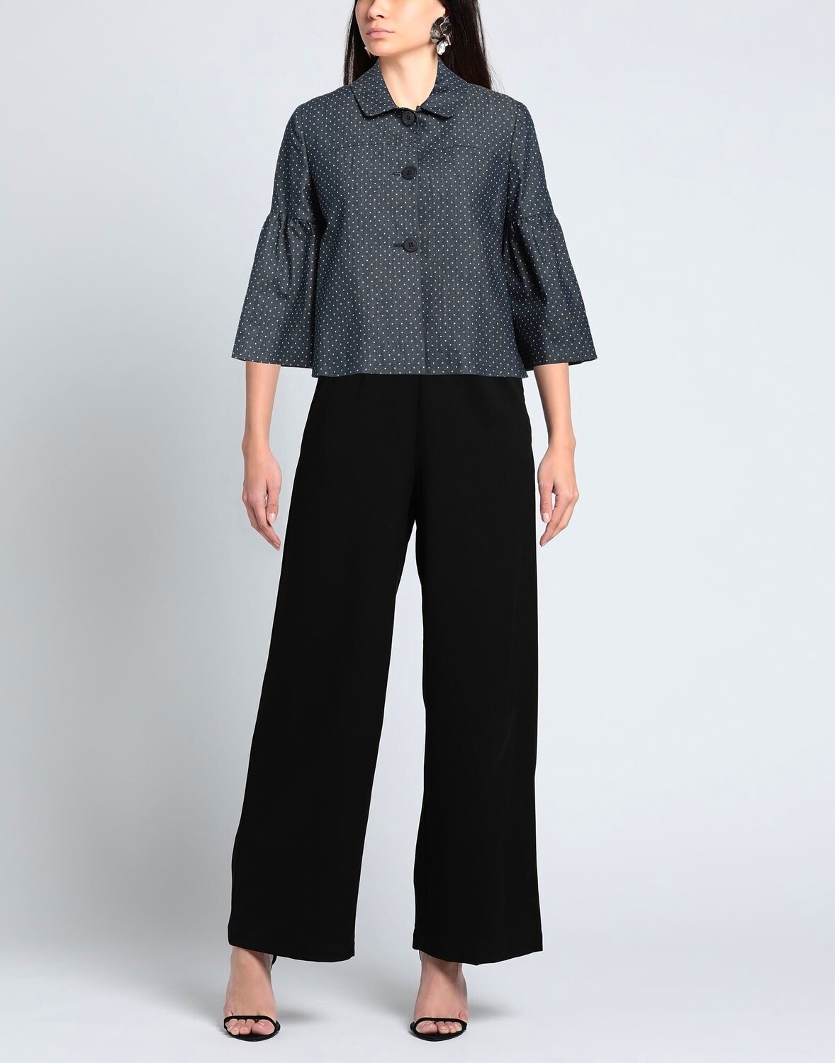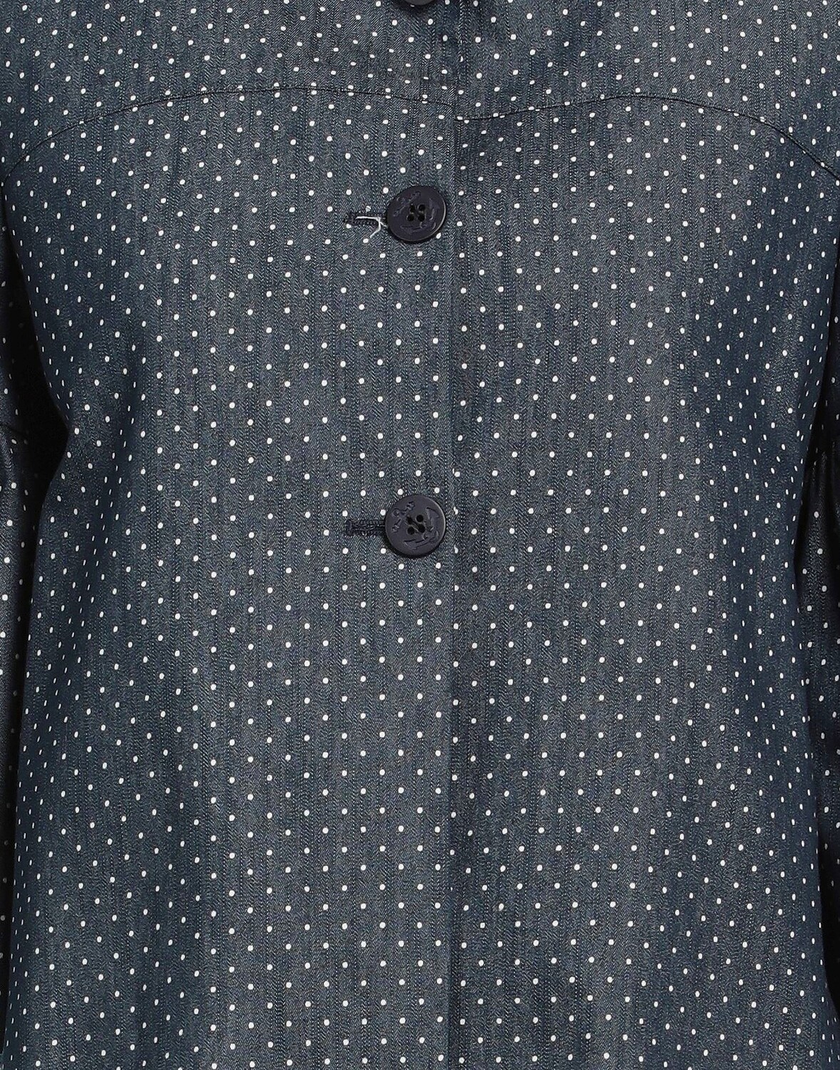 Джинсовая ткань, без аппликаций, горошек, воротник «Питер Пэн», однобортный, рукава 3/4, на подкладке, пуговицы, множество карманов, эластичный, однобортный пиджак