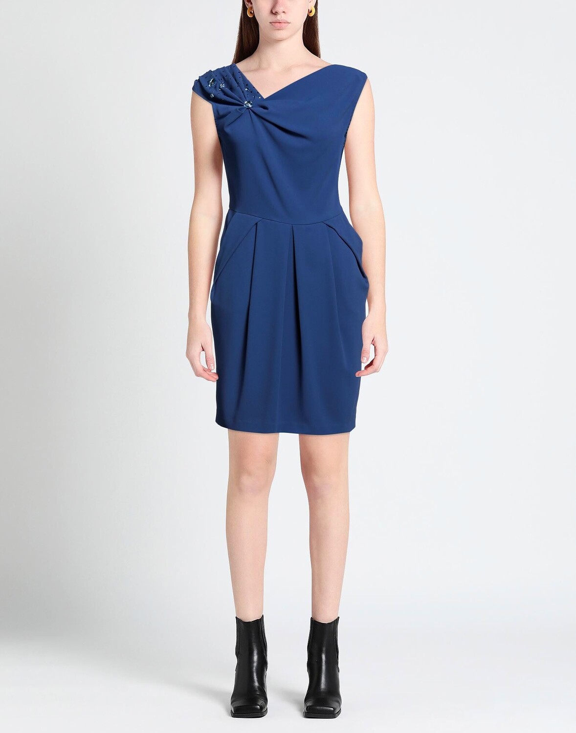 Креп, кристаллы, одноцветное изделие с аппликациями, v-образный вырез, без рукавов, полностью на подкладке, застежка на крючки, застежка-молния, без карманов, платье