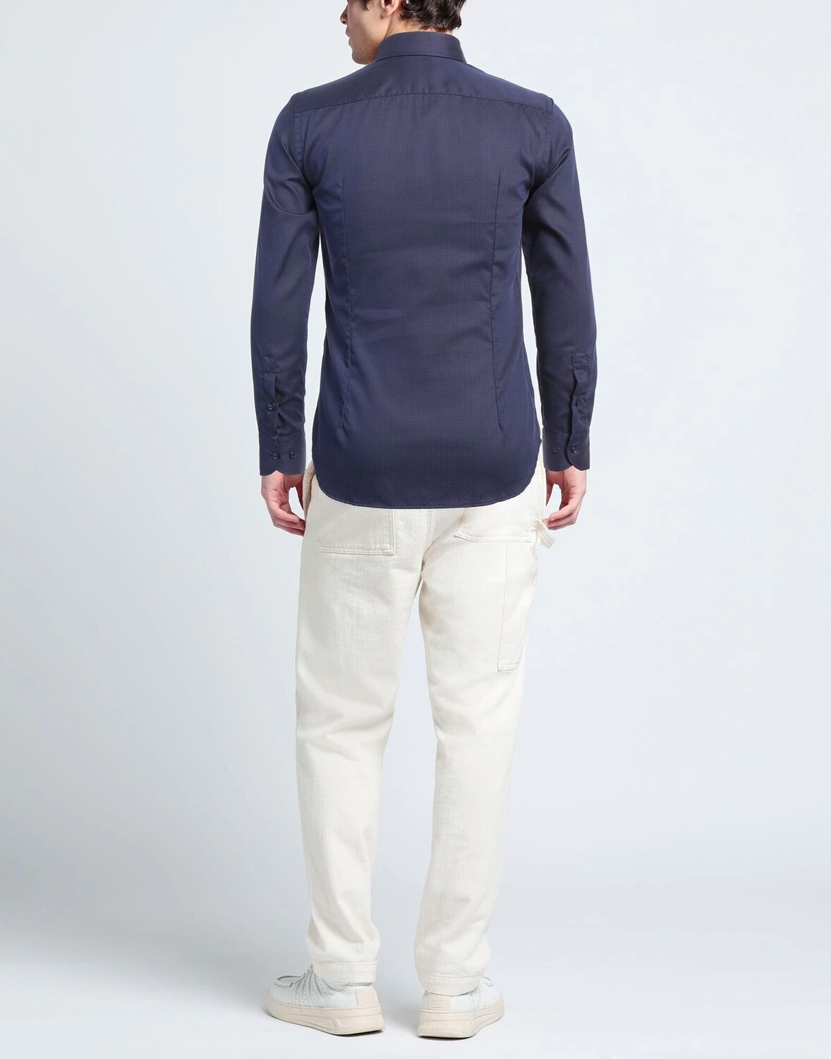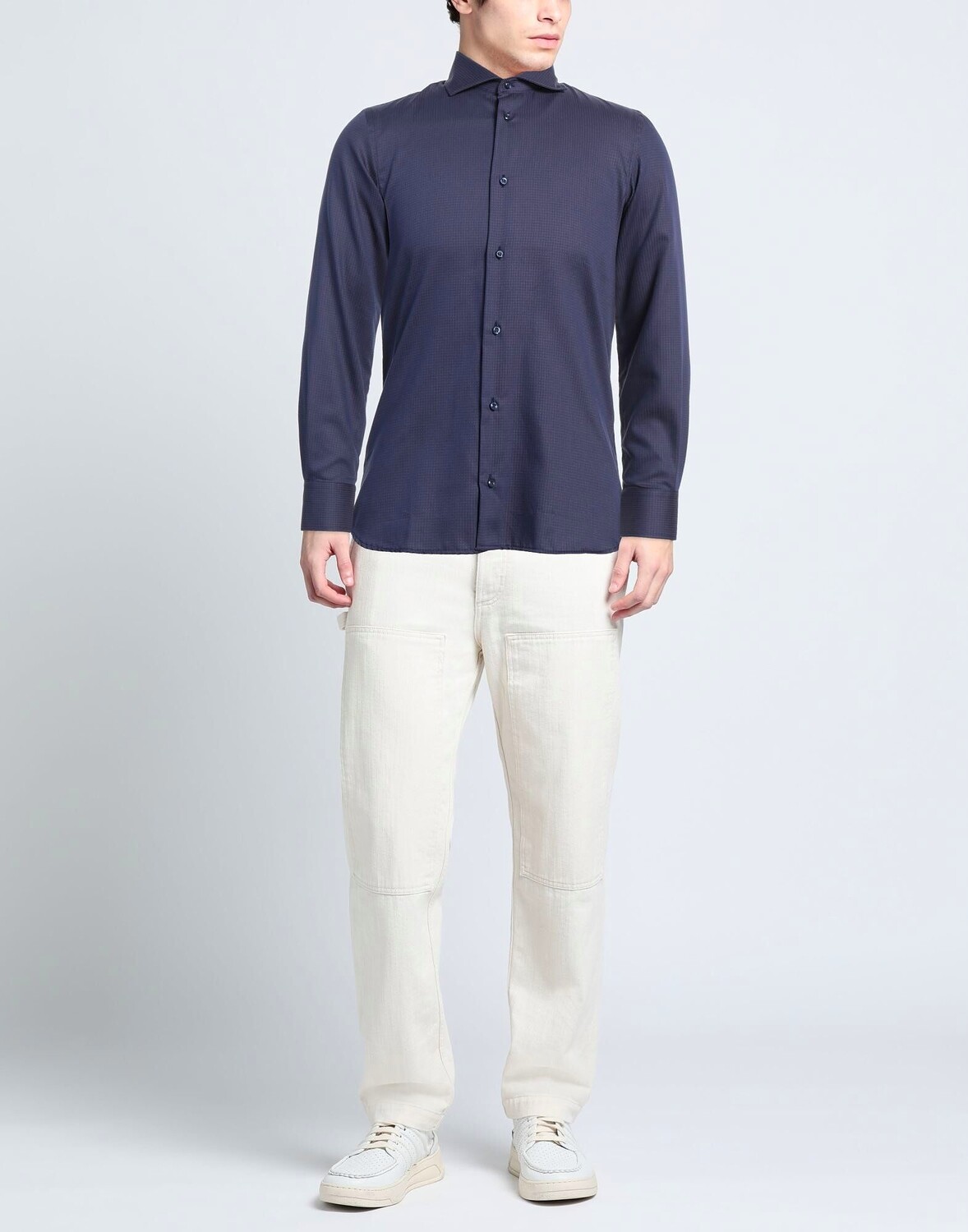 Тканевый, без аппликаций, двухцветный, воротник классический, длинные рукава, манжеты на пуговицах, застежка на пуговицы, без карманов, машинная стирка или химчистка, не отбеливать, нельзя сушить в стиральной машине, рубашка обычного кроя