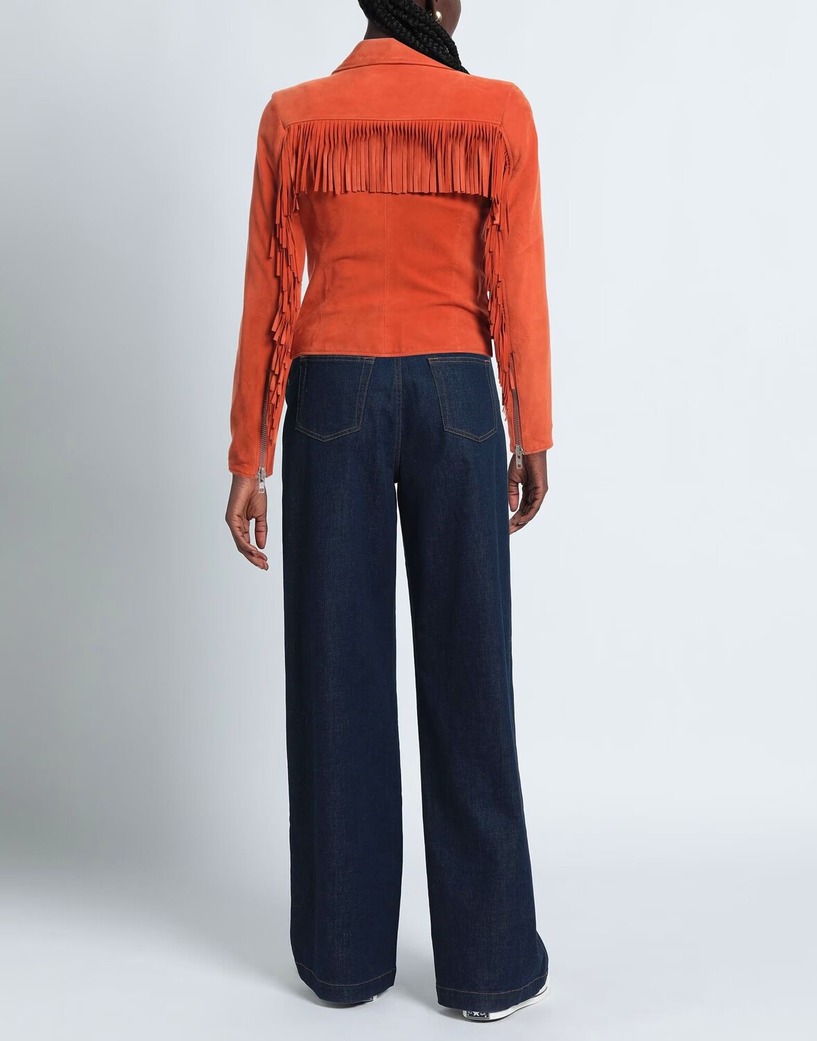 Косуха, замша, бахрома, одноцветное изделие, воротник с лацканами, однобортный, длинные рукава, внутри на подкладке, застежка-молния, карманы на молнии, содержит нетекстильные части животного происхождения, не стирать, не отбеливать, не сушить в стиральной машине