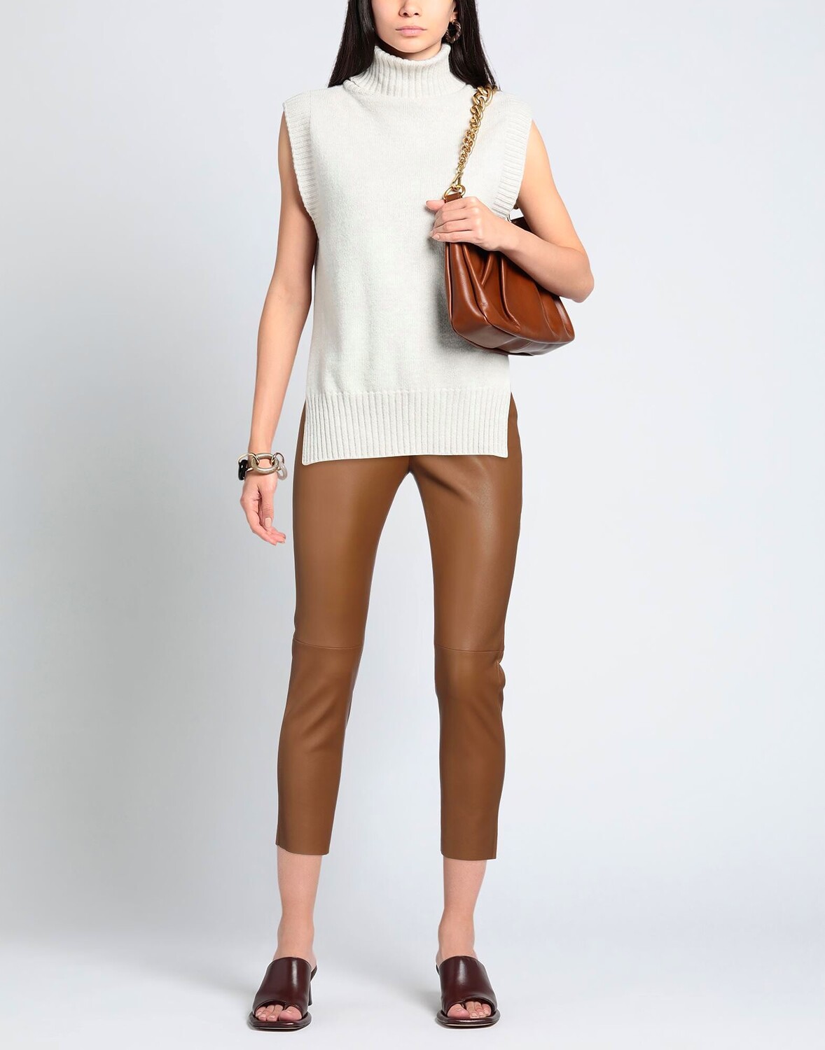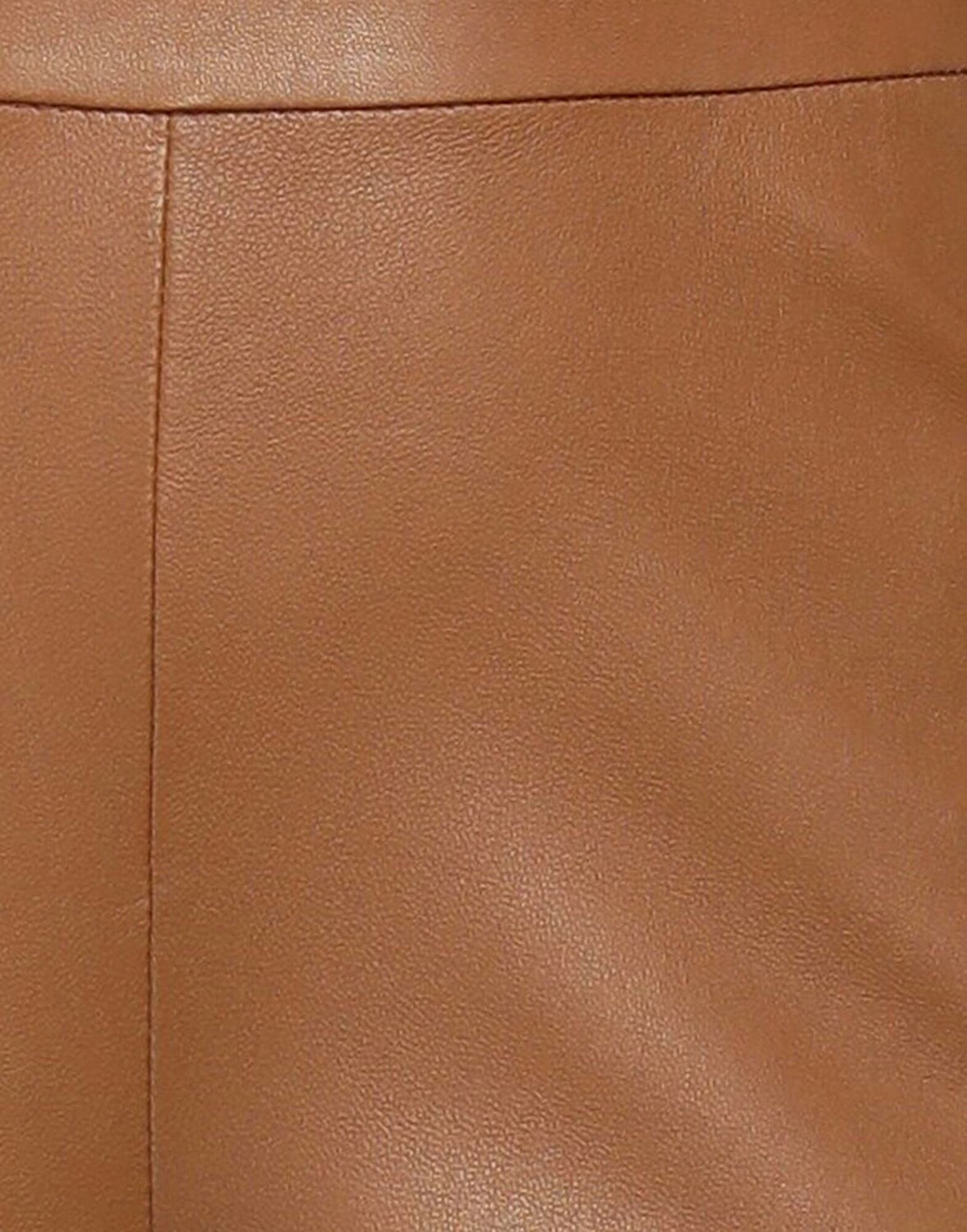 Ткань с покрытием, без аппликаций, однотонное изделие, завышенная талия, зауженные брючины, стандартный крой, застежка-молния, без карманов, нельзя стирать, нельзя сушить в стиральной машине, не отбеливать, не гладить, содержит нетекстильные части животного происхождения, брюки