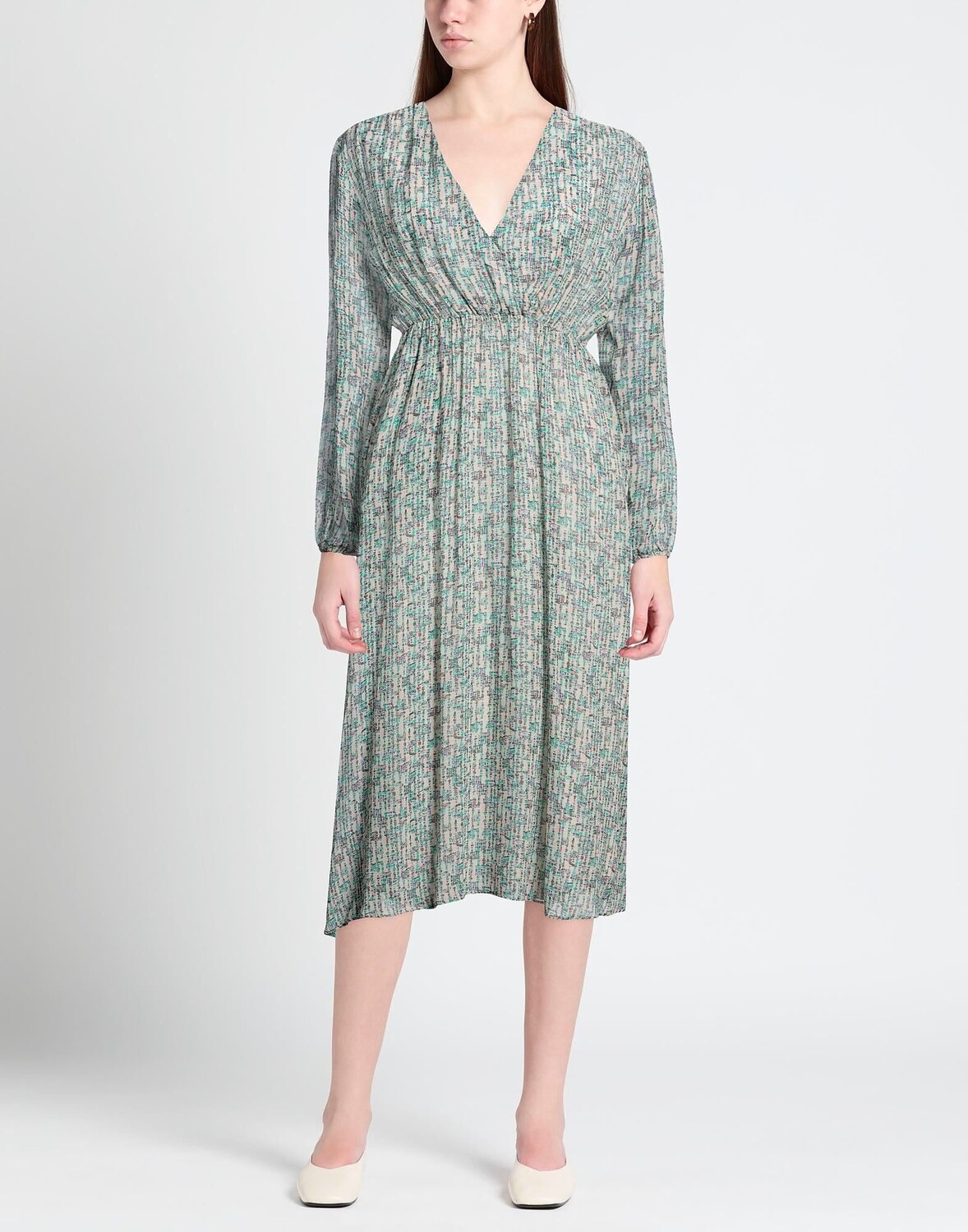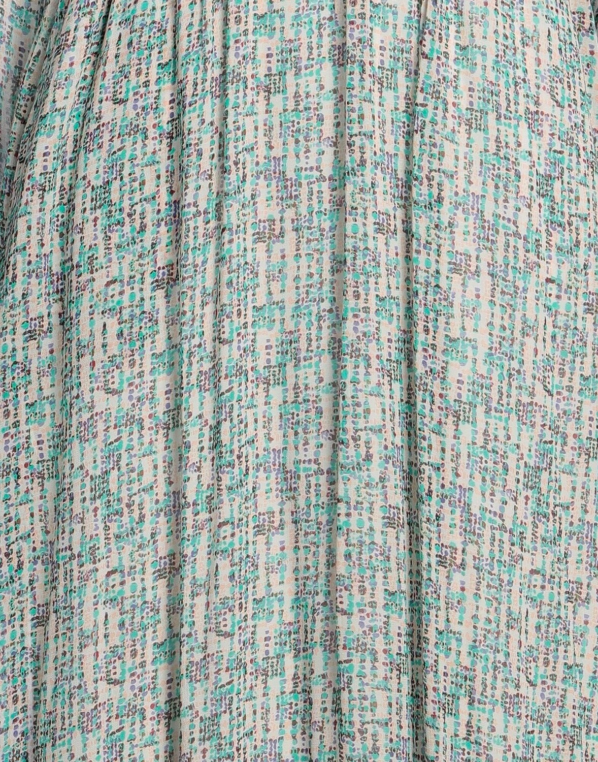 Креп, без аппликаций, разноцветный, v-образный вырез, длинные рукава, скользящий силуэт, без карманов, фасон трапеция