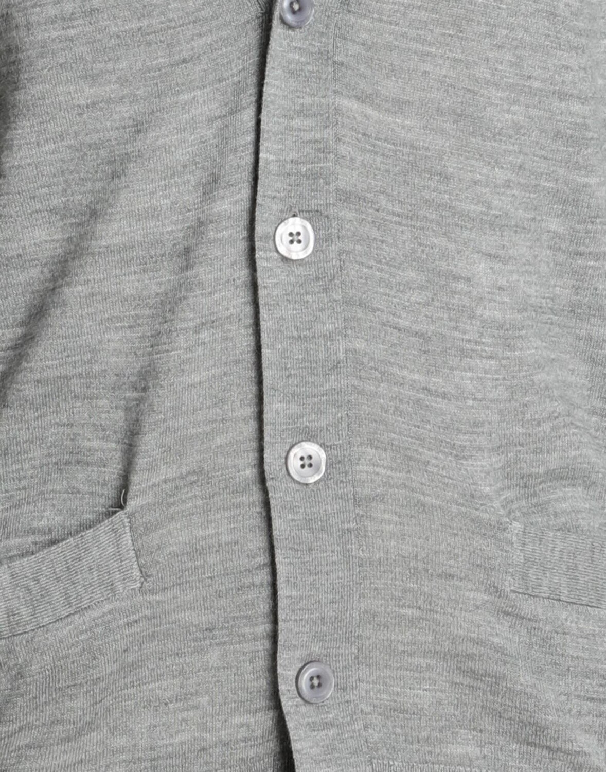 Трикотаж, легкий трикотаж, логотип бренда, вышивка, одноцветное изделие, глубокий вырез, длинные рукава, пуговицы, множество карманов
