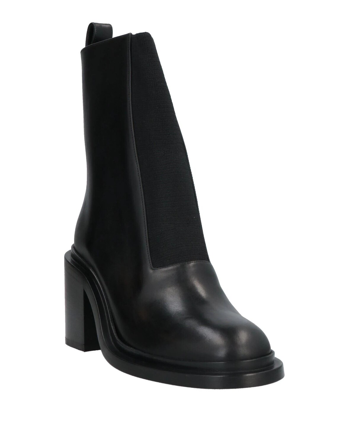 Кожа, полированная кожа, без аппликаций, одноцветное изделие, кожаная подкладка, эластичные канавки, скругленный носок, квадратный каблук, кожаная подошва, содержит нетекстильные части животного происхождения, ботильоны